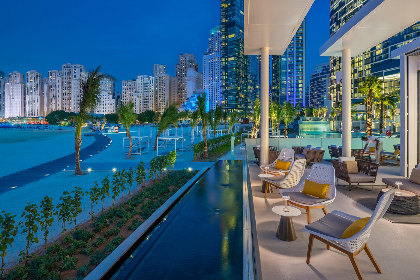 With 217 rooms and suites, this opulent beachfront hotel stands tall in Jumeirah Beach Residence, offering panoramic sea views, elevated dining, and one of the world’s highest rooftop infinity pools.