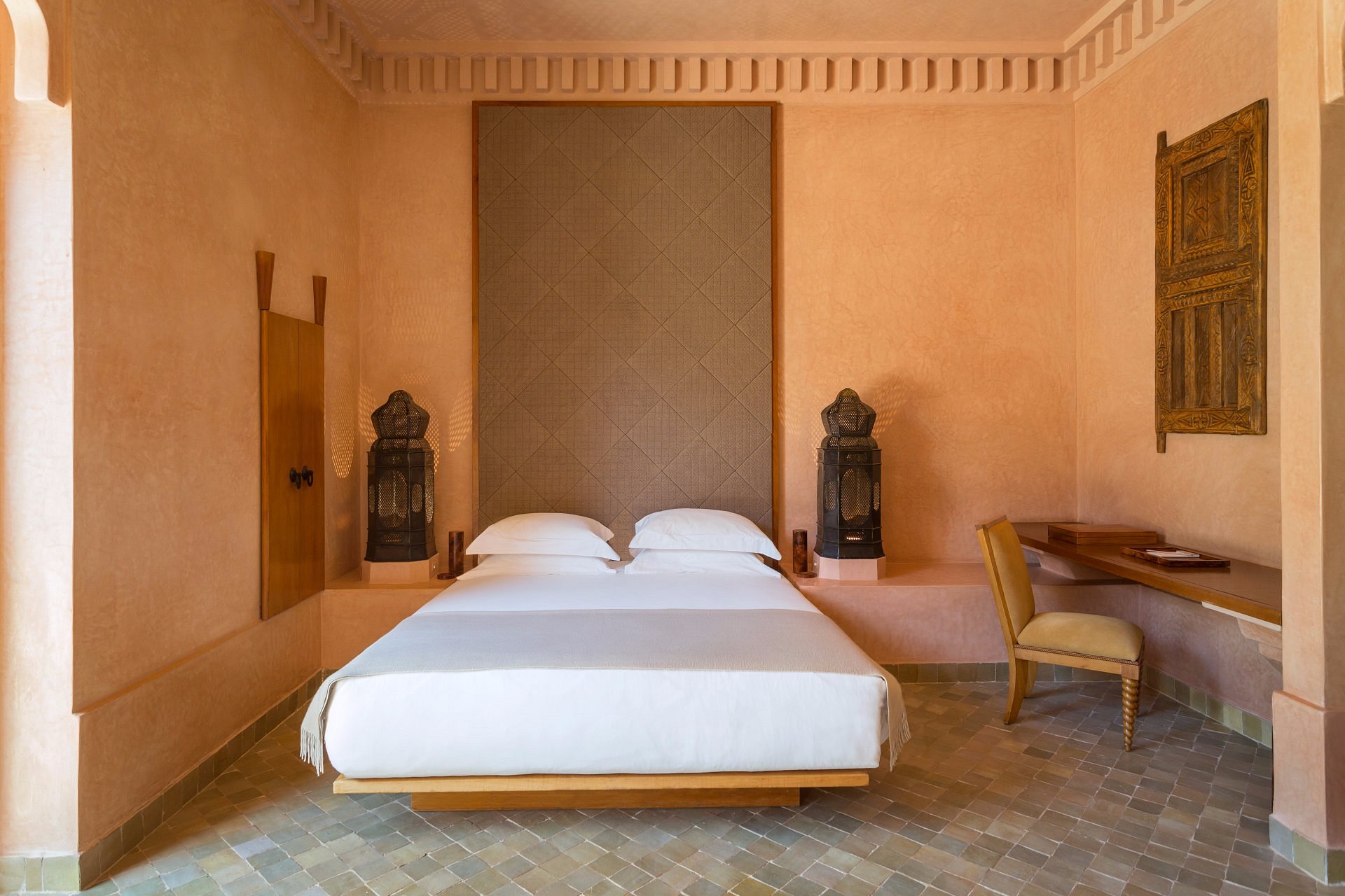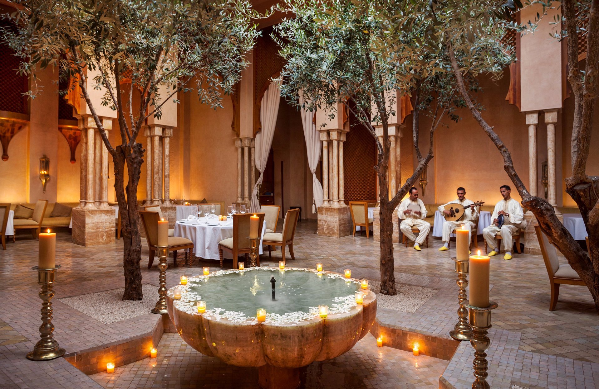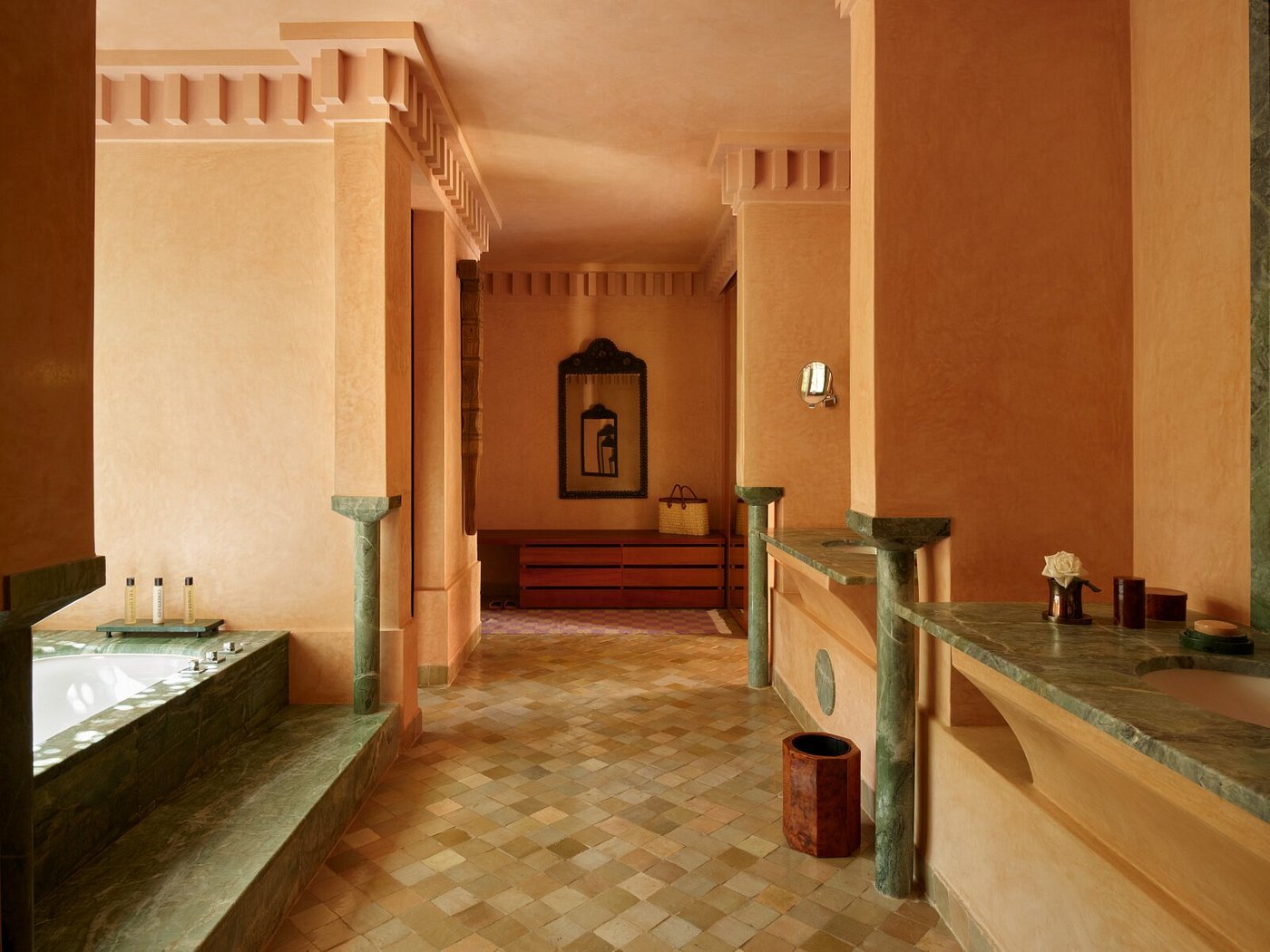 Here, Moorish arches frame a vast reflecting pool, pathways are paved in pale stone, and suites open to private courtyards and heated pools. It’s serenity made visible—where time slows to the rhythm of fountains and distant birdsong.