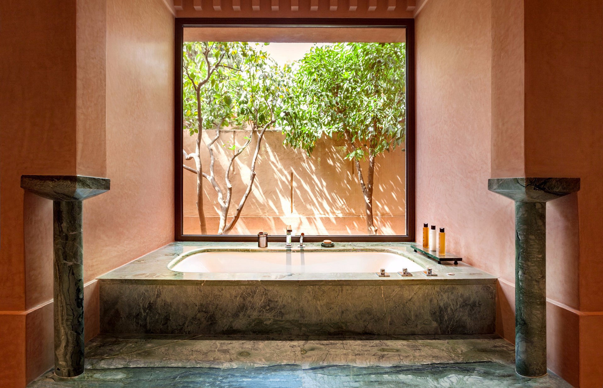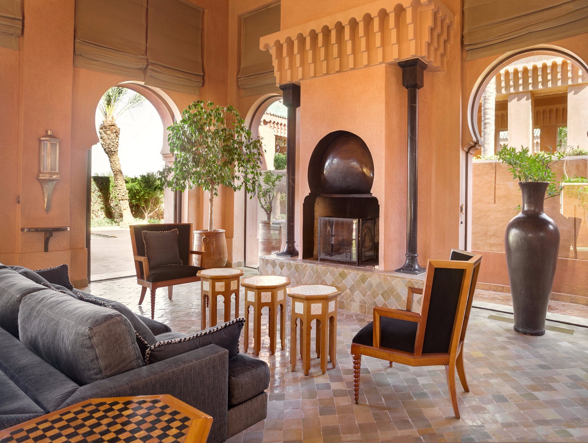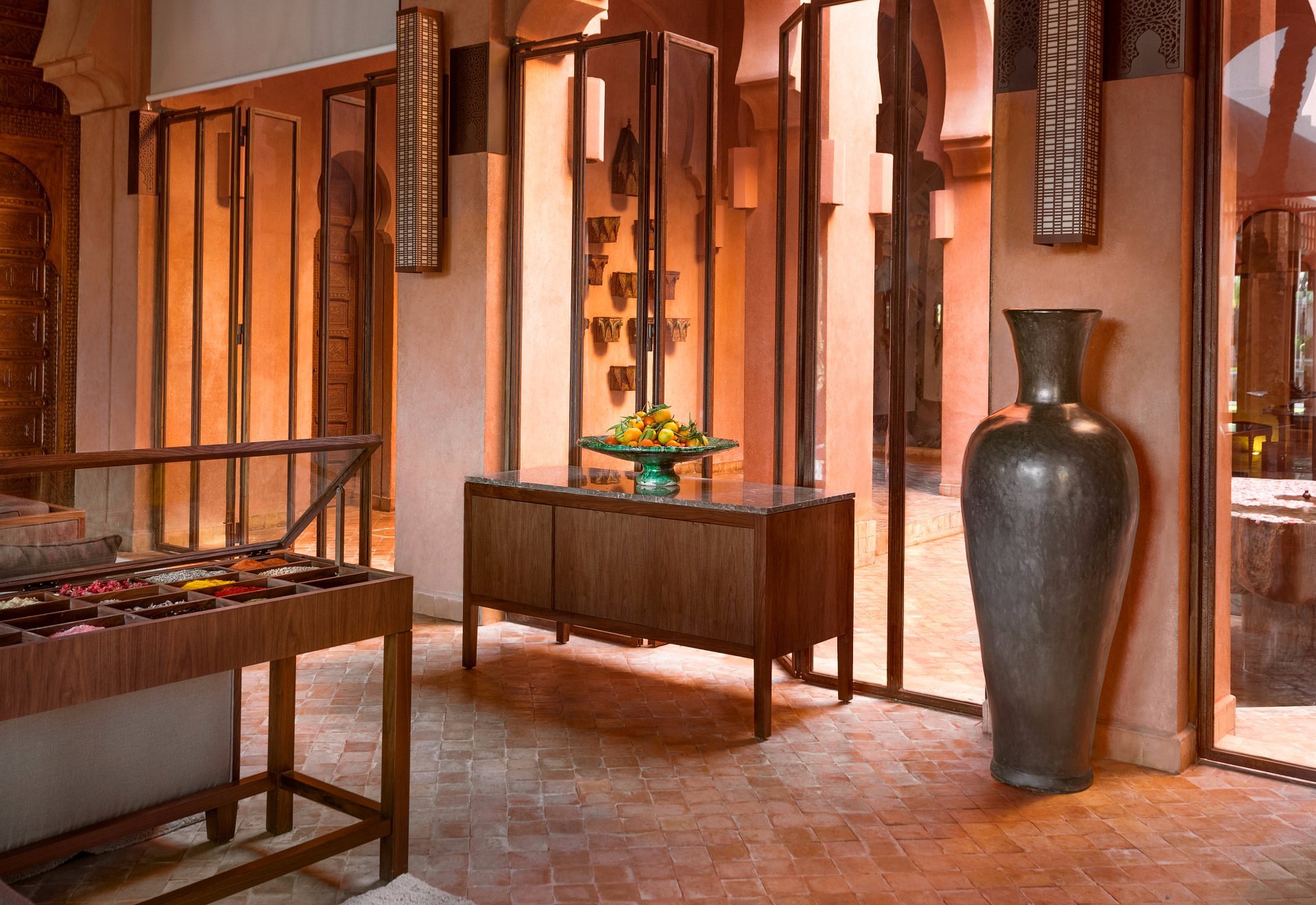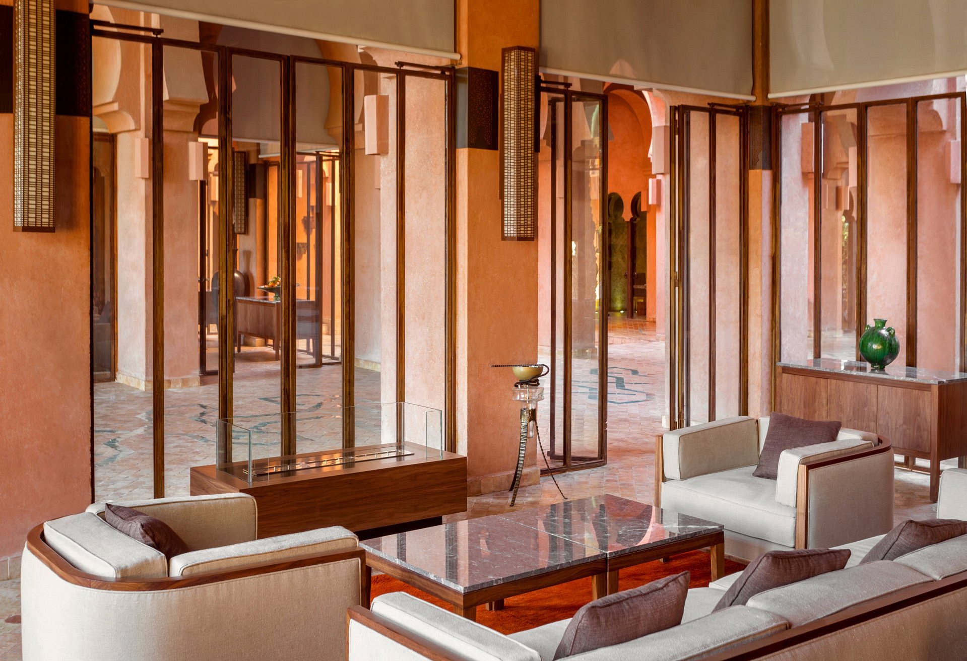 Here, Moorish arches frame a vast reflecting pool, pathways are paved in pale stone, and suites open to private courtyards and heated pools. It’s serenity made visible—where time slows to the rhythm of fountains and distant birdsong.