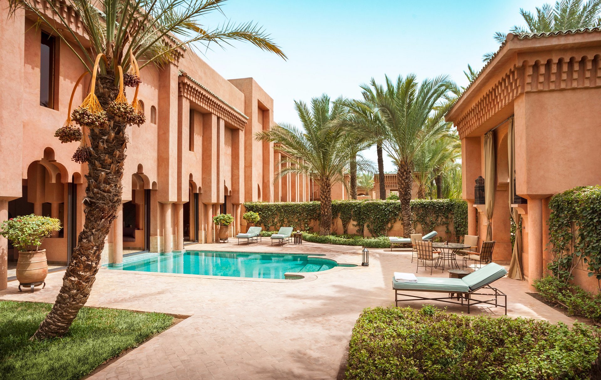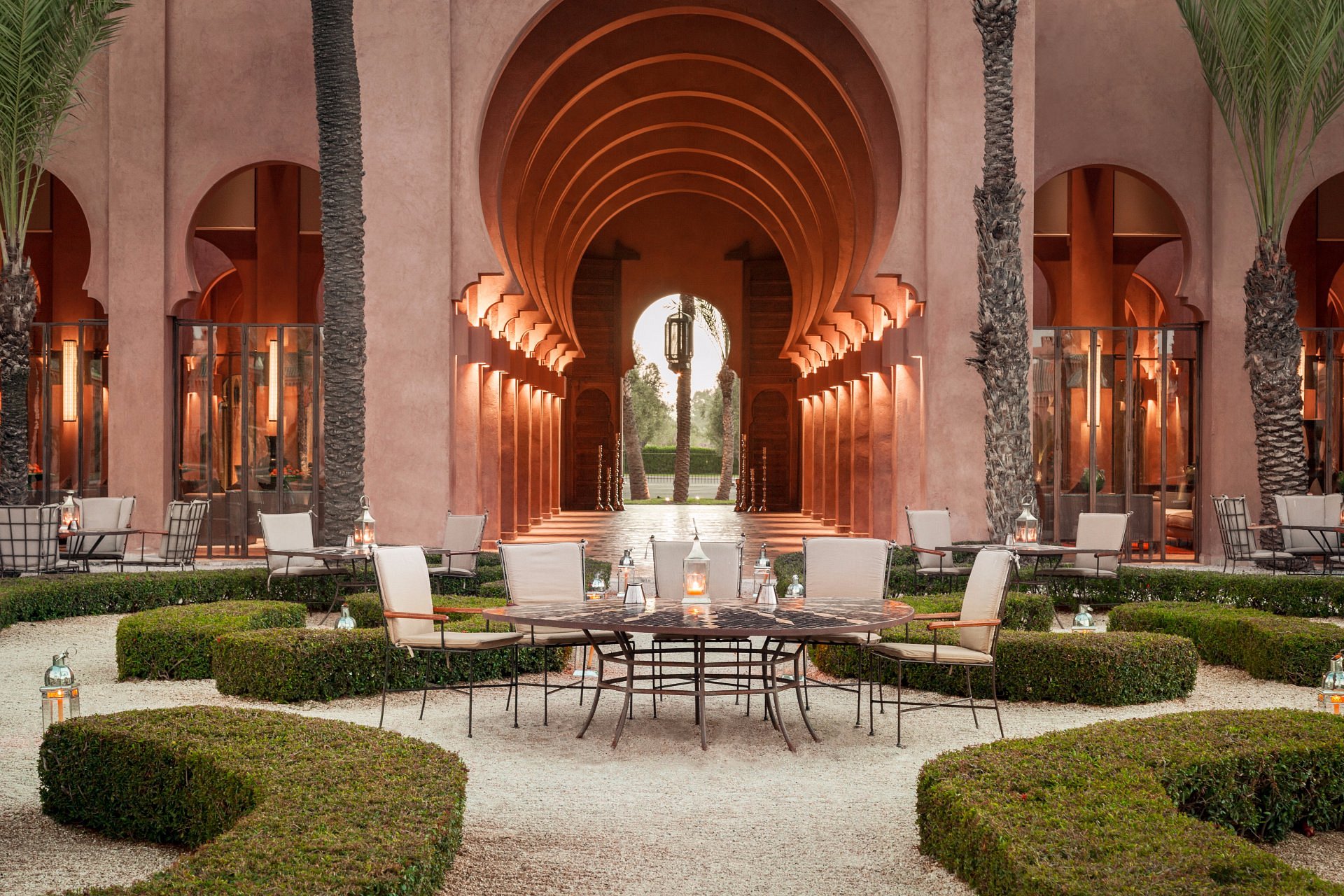 With only 40 pavilions and maisons, this opulent desert resort feels like a private palace—colonnades in soft shadow, lanterns at dusk, and the scent of orange blossom on warm air.