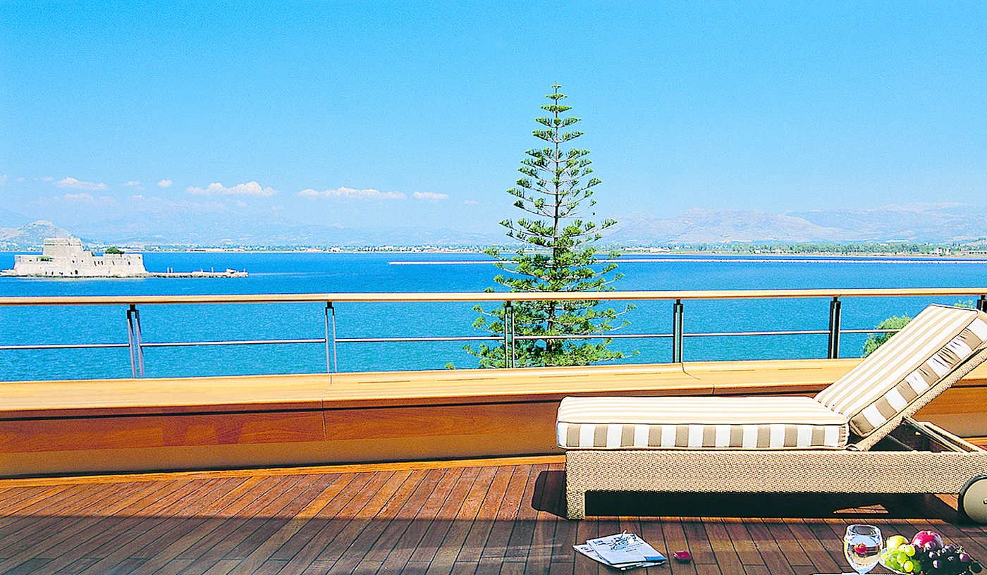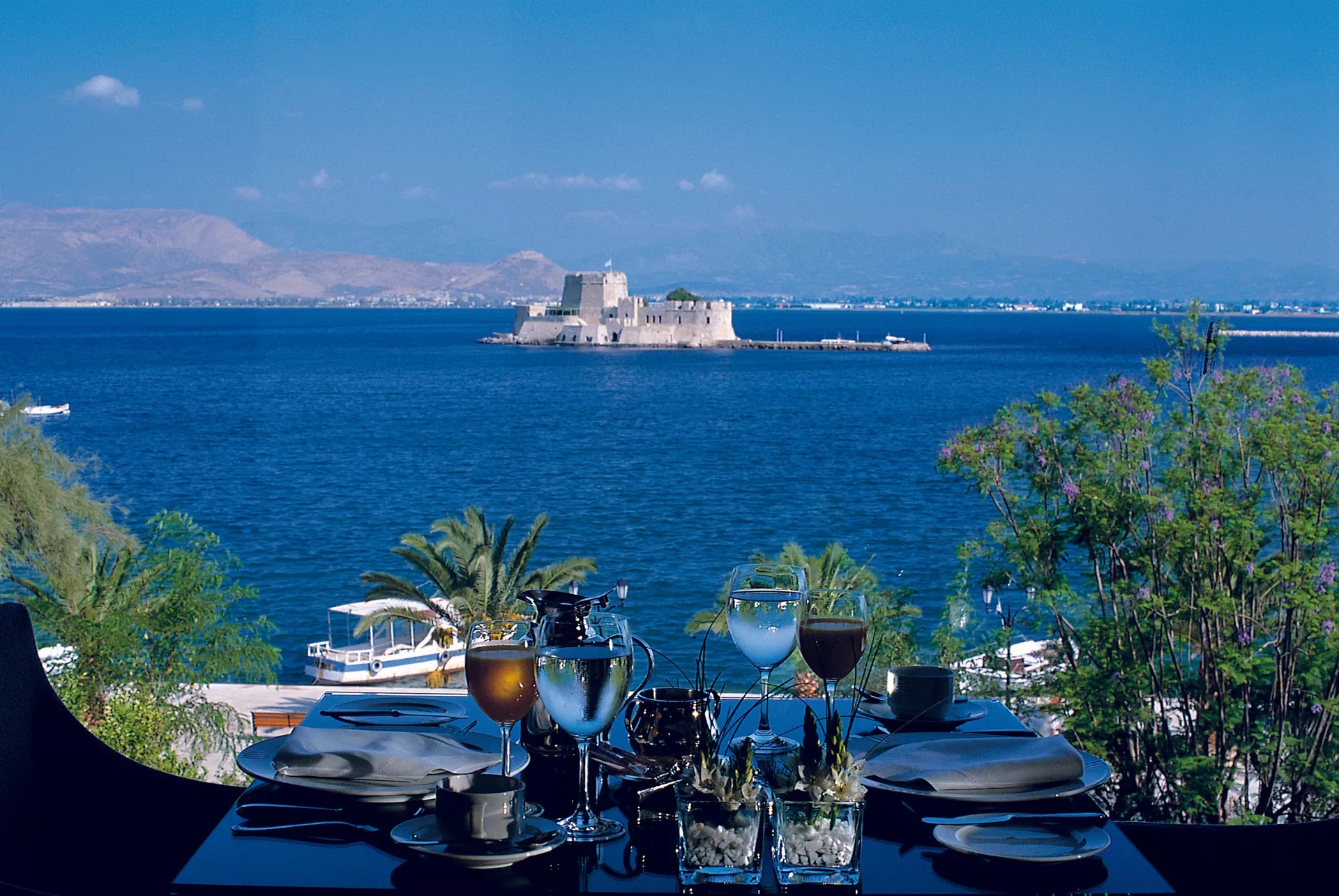 Location: Nafplio, Peloponnese, Greece — waterfront below Acronafplia; ~1 hr 45 min from Athens (ATH) by road