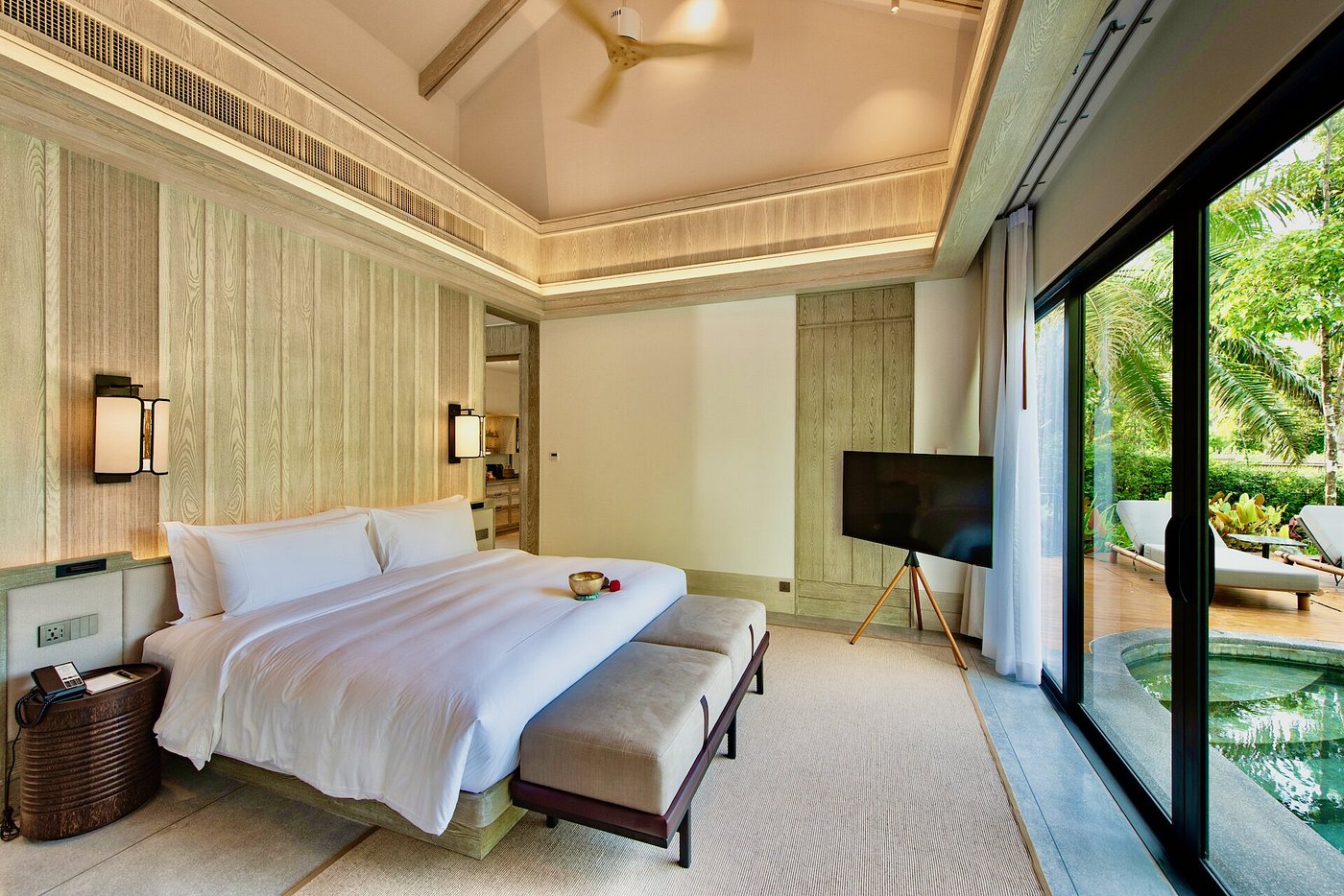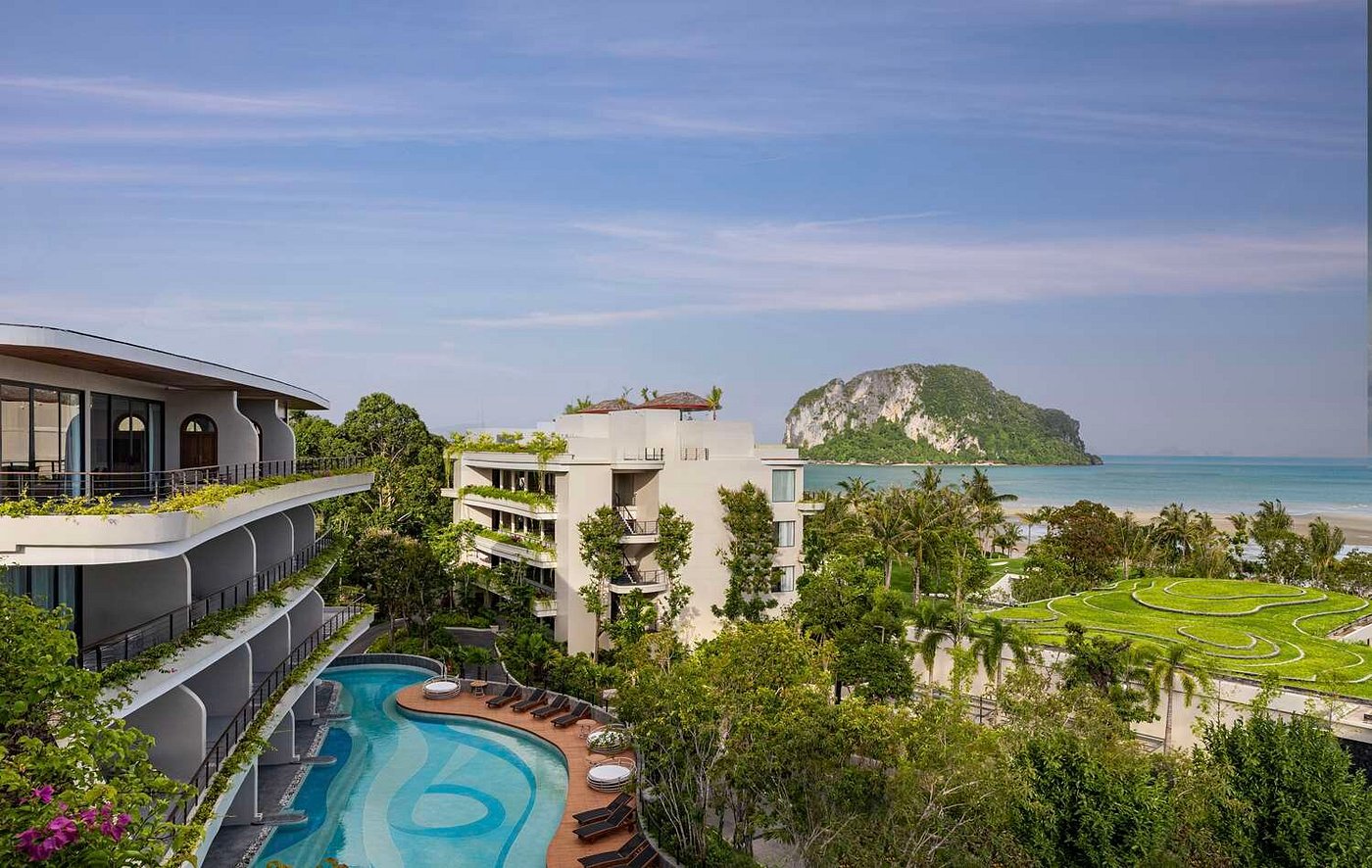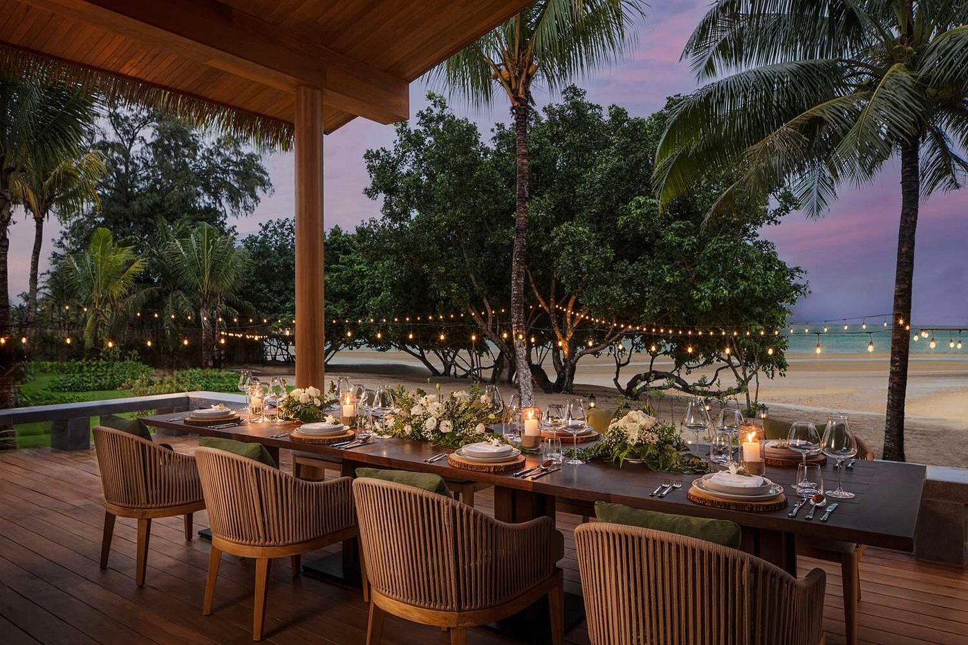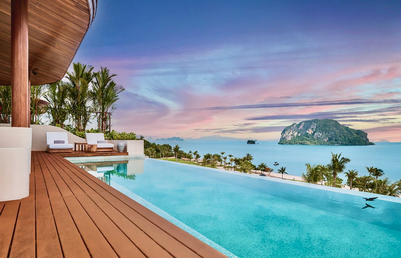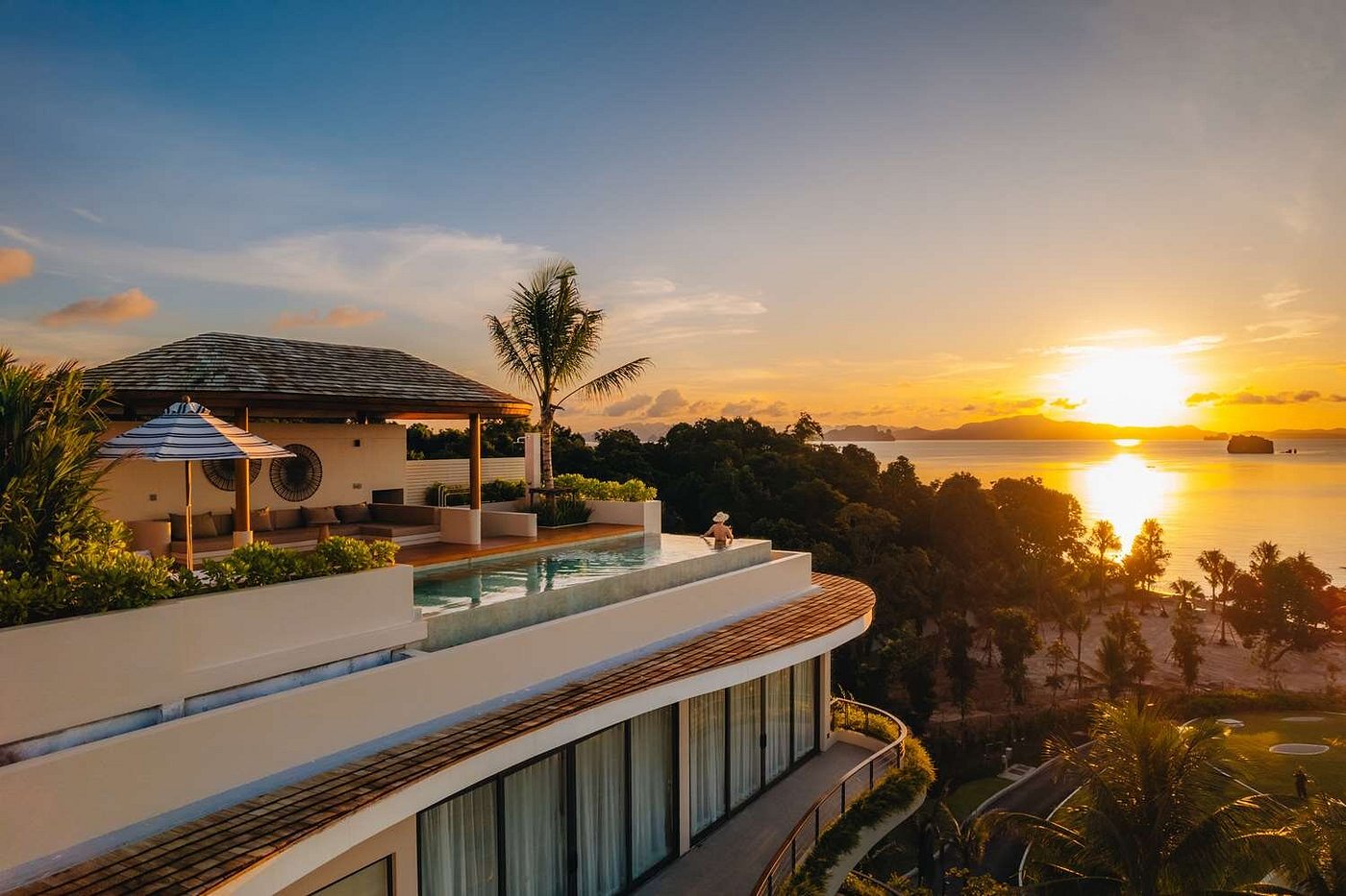With 148 rooms, suites, and villas, the resort blends tropical elegance with contemporary comfort—breezy spaces, soft woods, and open views across the Andaman Sea toward the limestone silhouettes of Phang Nga Bay.