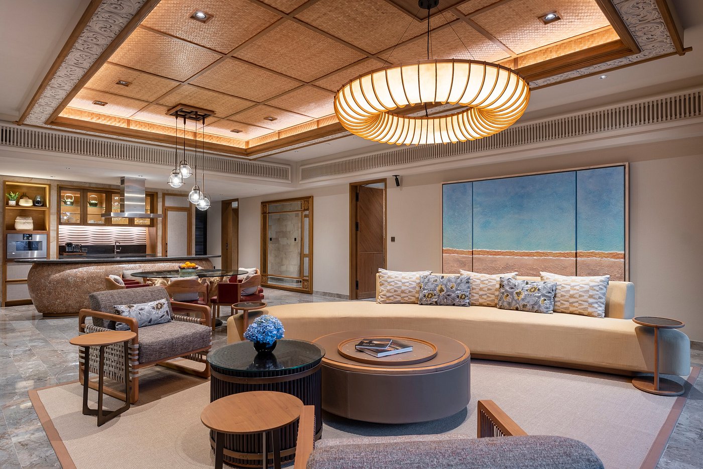 Your room feels relaxed and airy — natural textures, open space, and the quiet rhythm of the coast carrying into sleep.