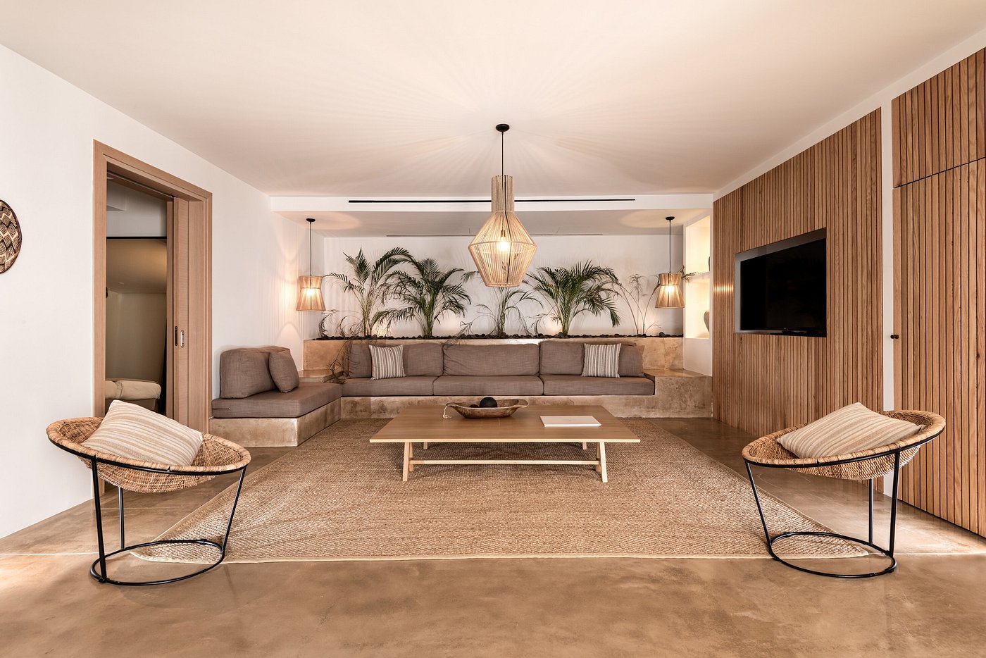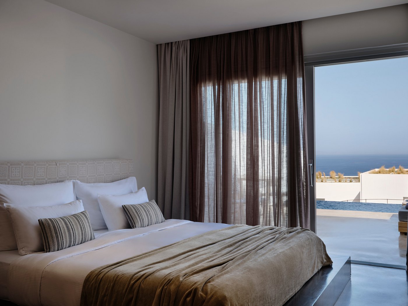 With 114 suites and villas, each angled toward the Aegean, this coastal resort is built around the island’s most cinematic hour—sunset.