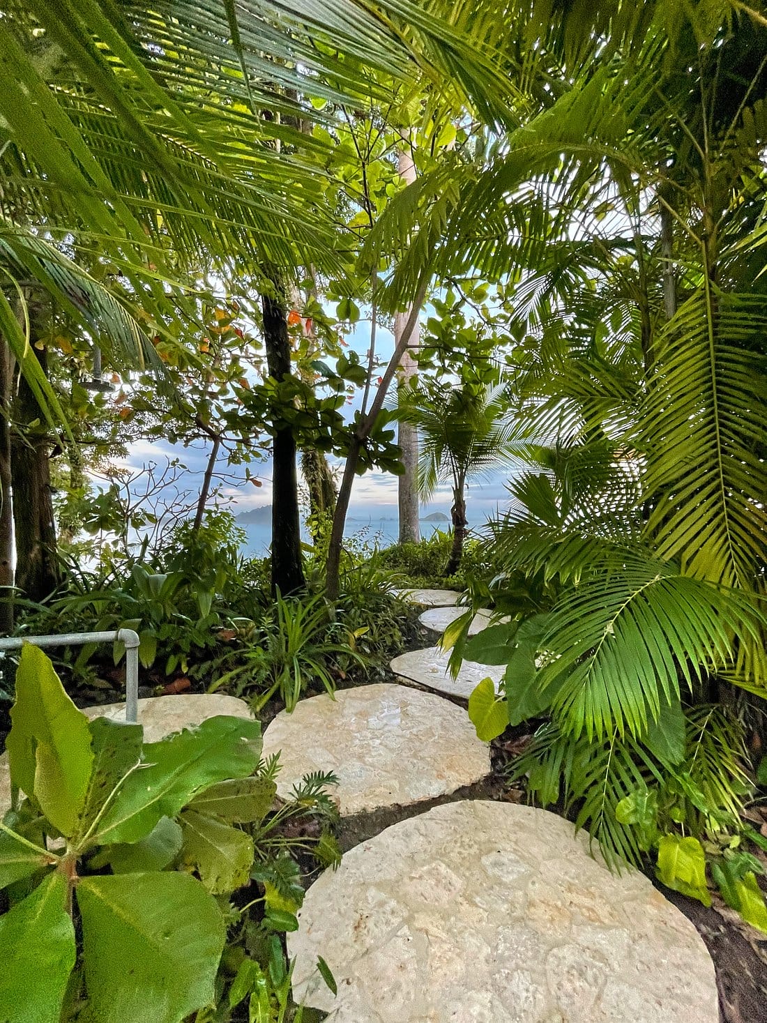 Sunset paints the water bronze. You share whole grilled snapper with lime and achiote, then follow lanterns back through the gardens as tree frogs begin their chorus.