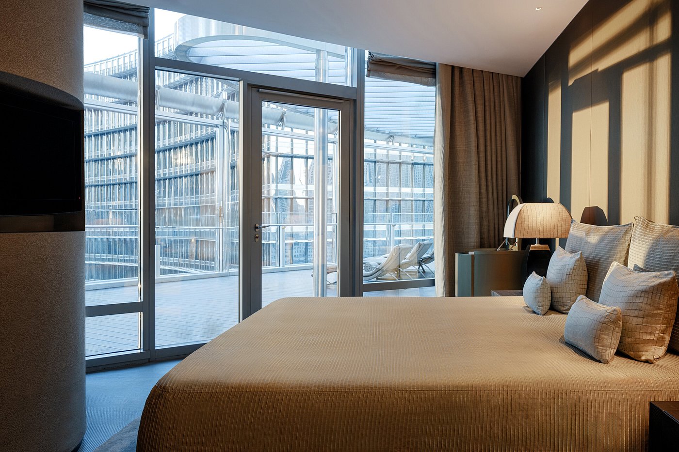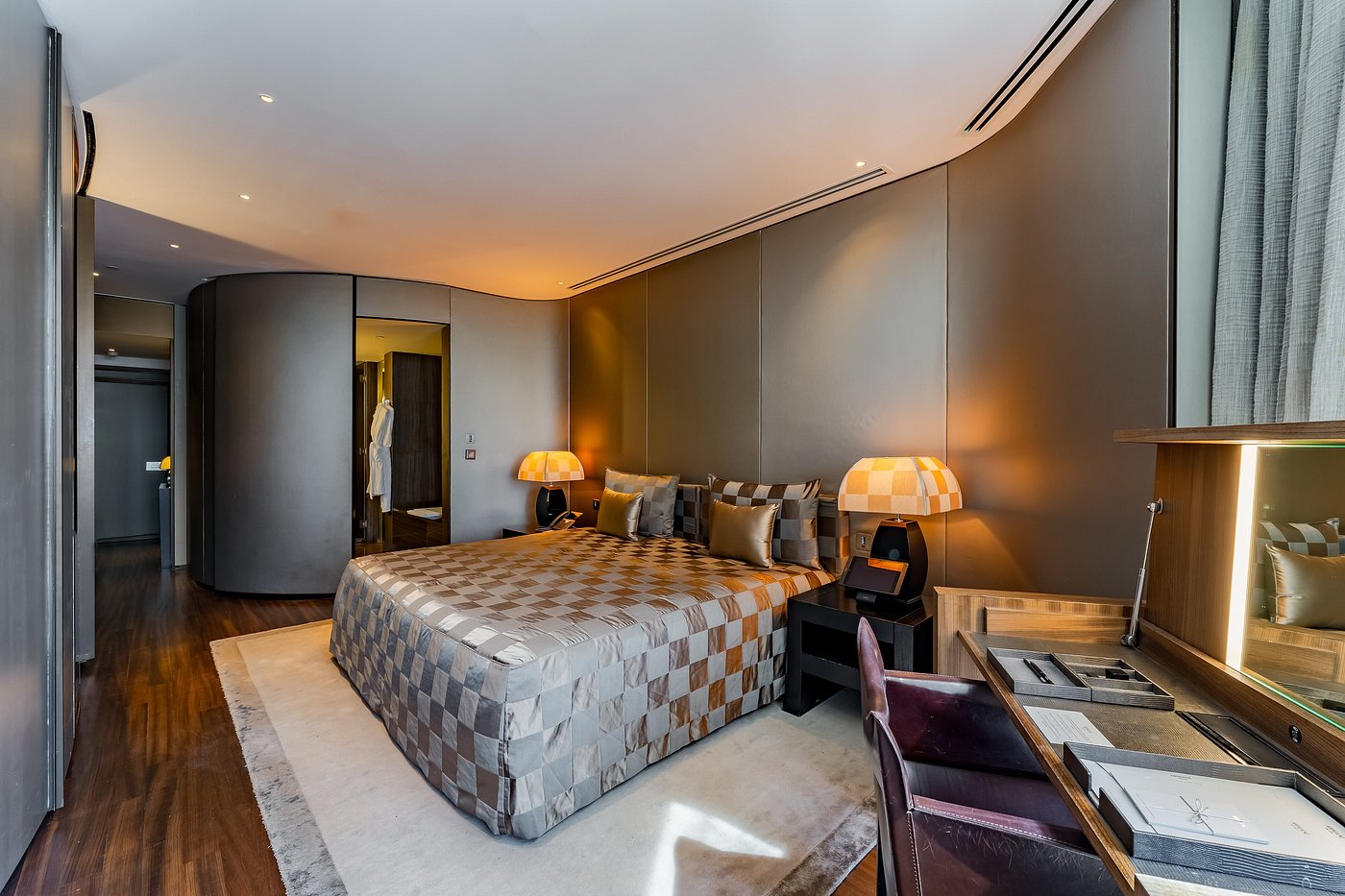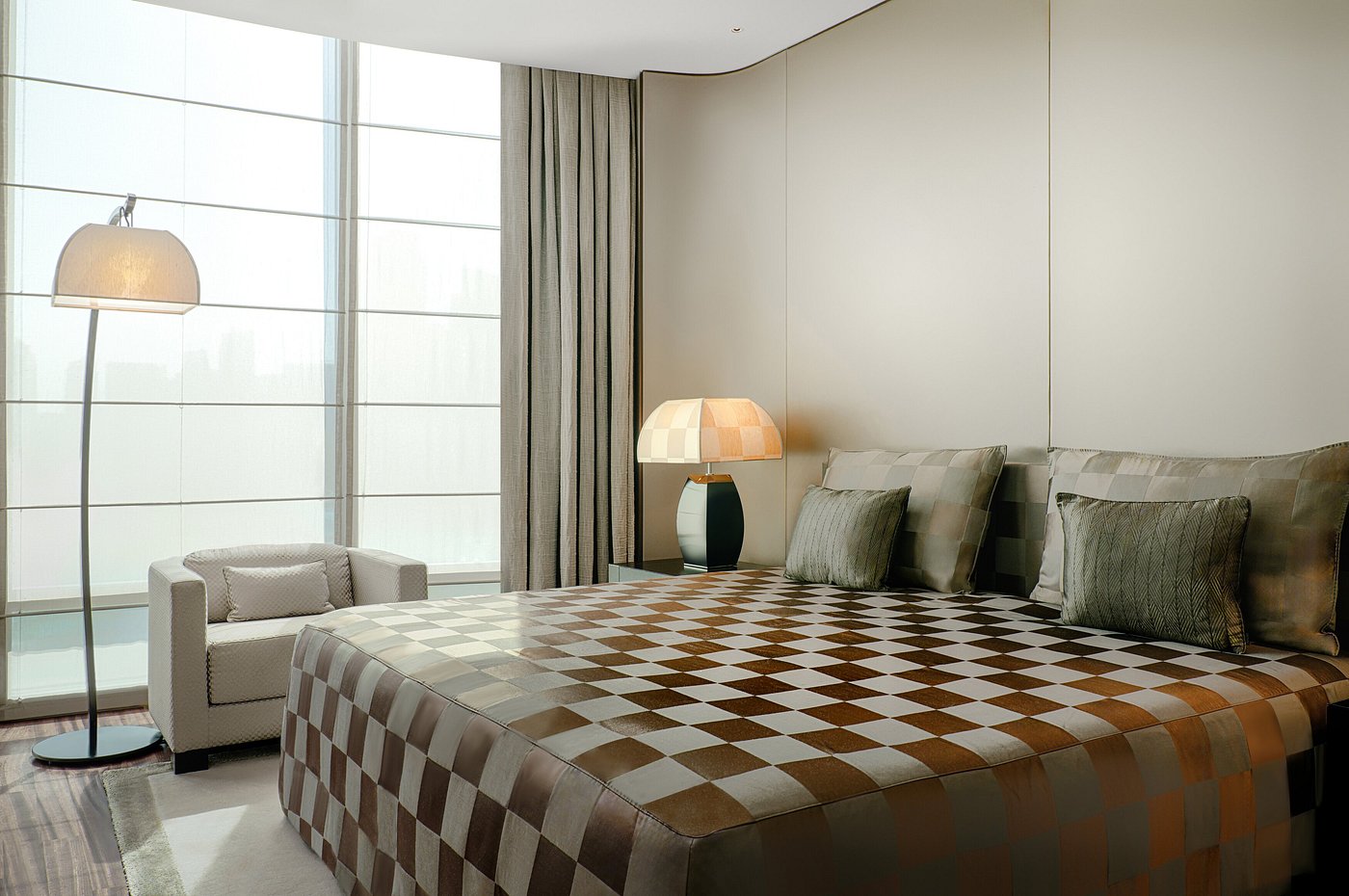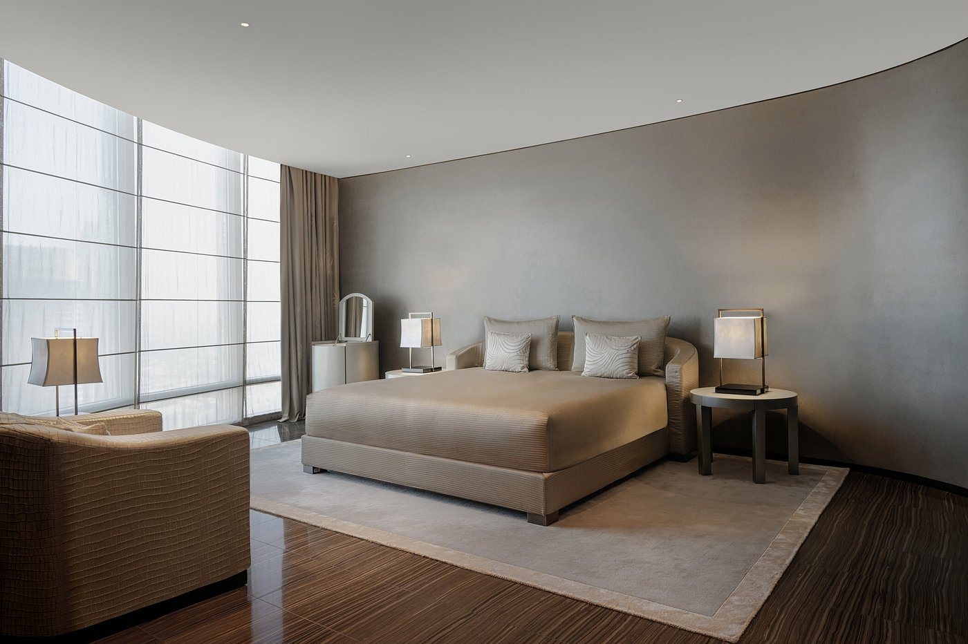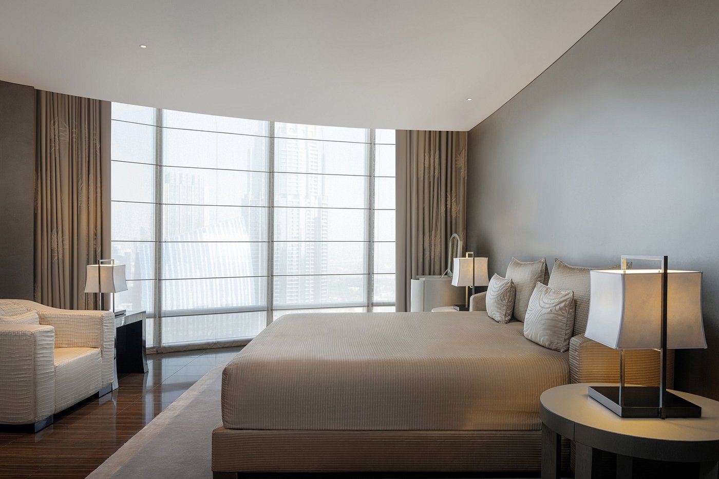 Rates: From USD 430—signature Armani minimalism inside the world’s most iconic tower