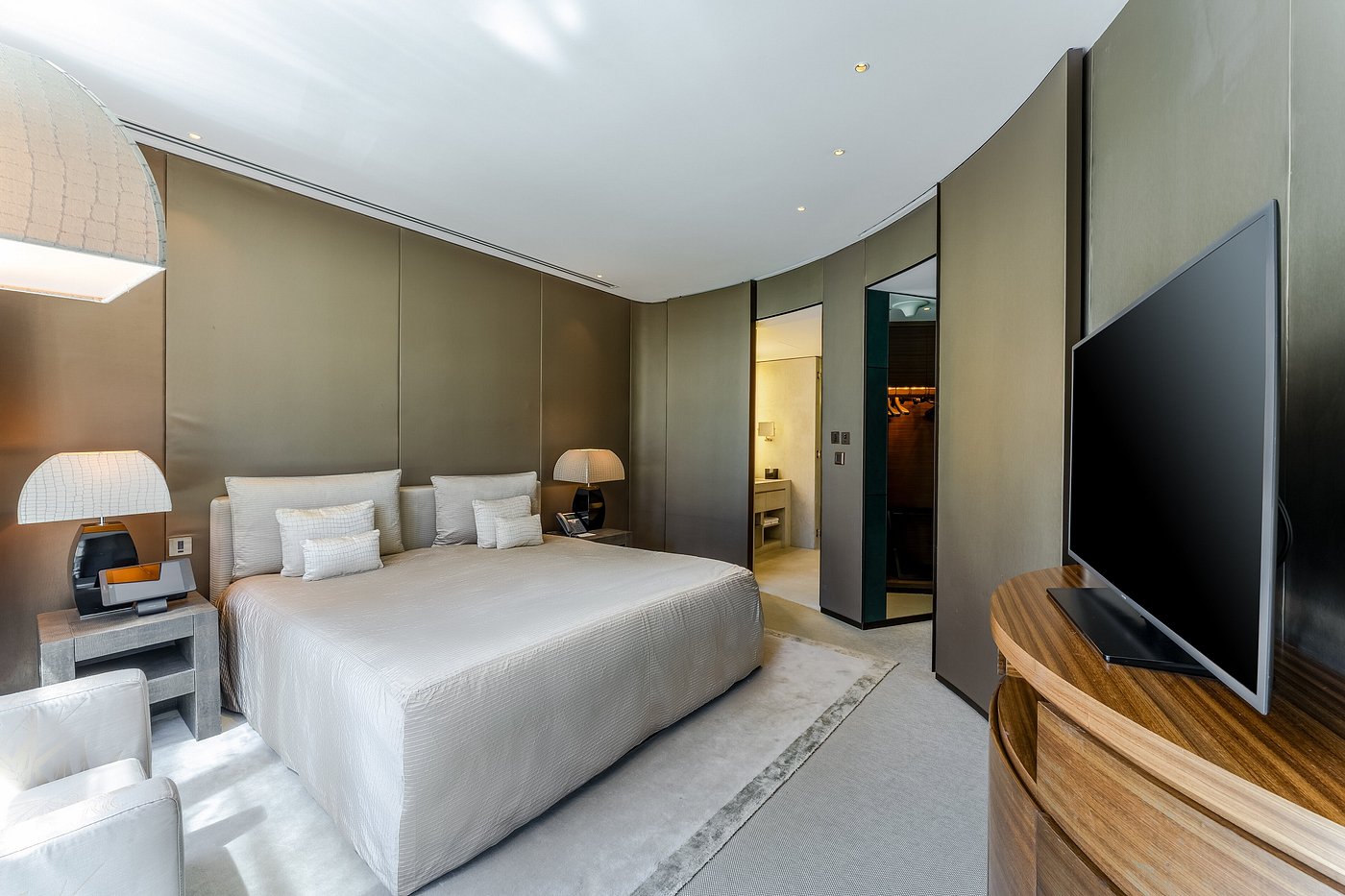 • Armani Design Philosophy: Minimalist luxury, custom furnishings, and perfectly balanced materials.