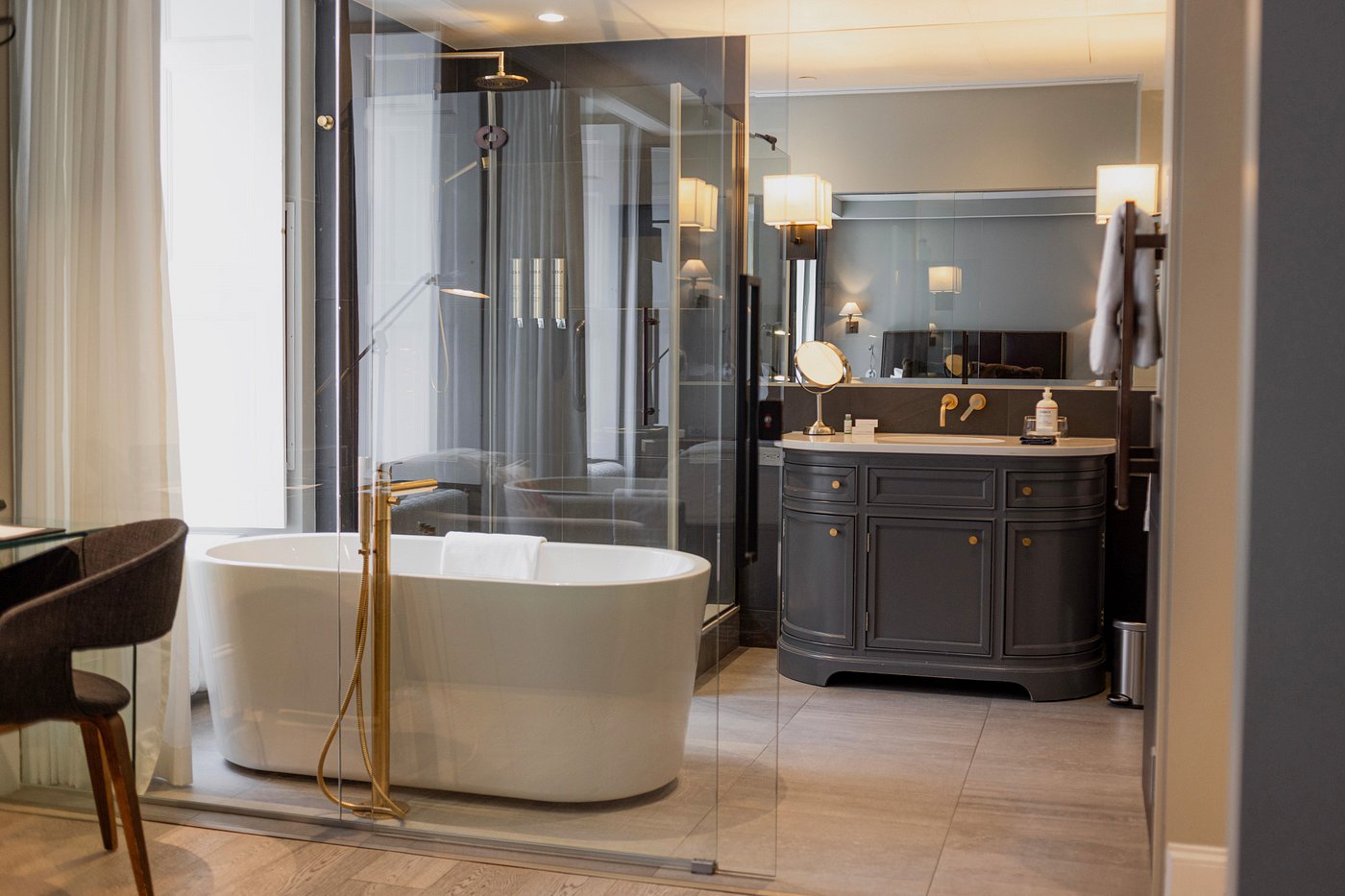 Stone walls and layered materials hold the quiet. Outside, the river darkens and movement slows. Inside, the hotel feels cocooned, allowing sleep to arrive deep and uninterrupted.