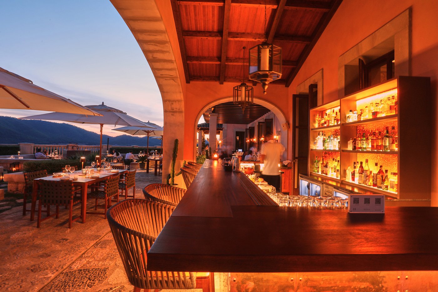 Tables spill into a stone courtyard; you share grilled prawns, tomatoes slick with olive oil, and a glass of Mallorcan callet. The hills blush pink as the last light slips away.