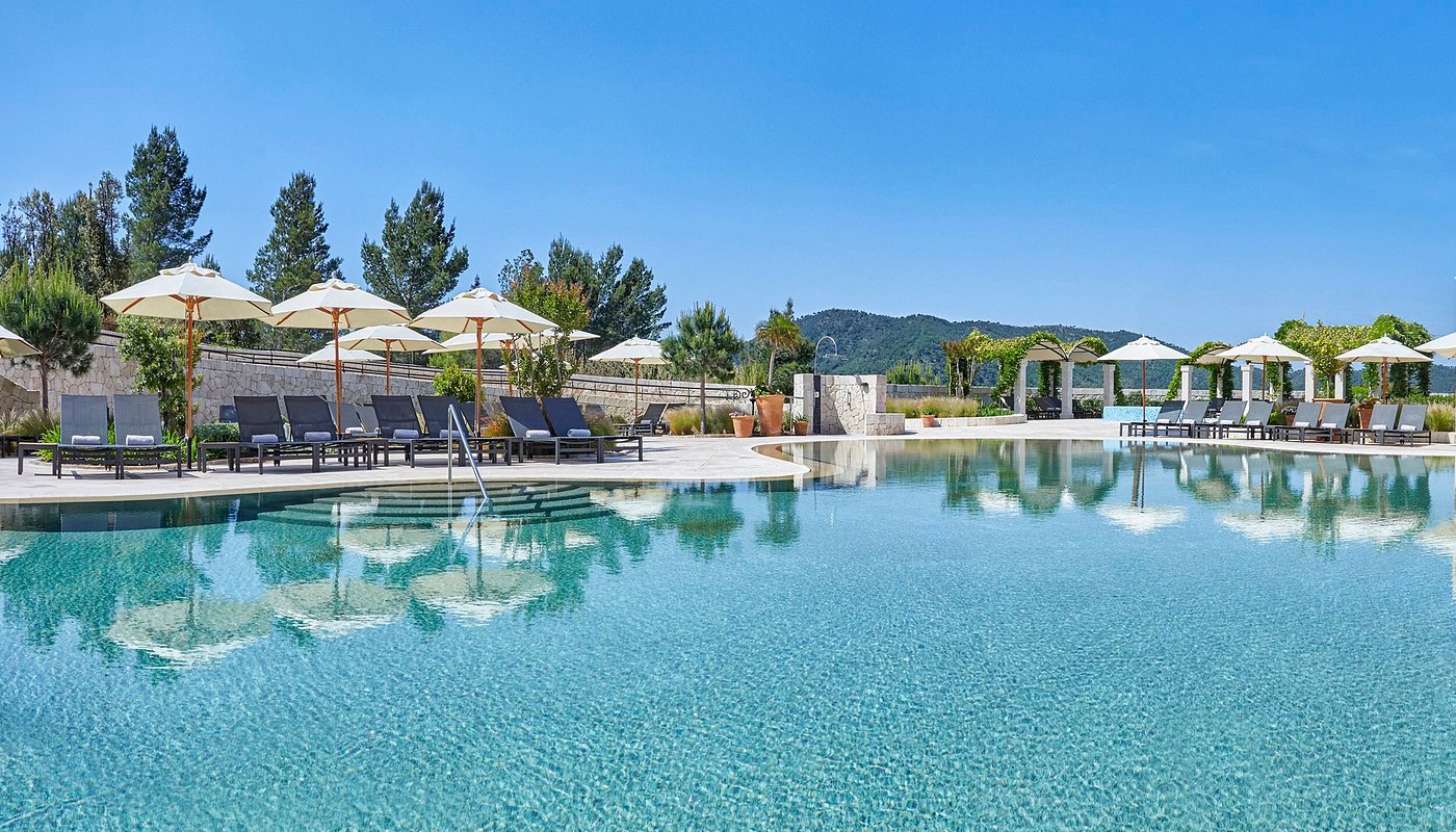 Cap Vermell Grand Hotel keeps 142 rooms, suites, and villas with views over pine-clad hills and the distant sea—a countryside hideaway where mornings begin with birdsong and end under starry, ink-dark skies.