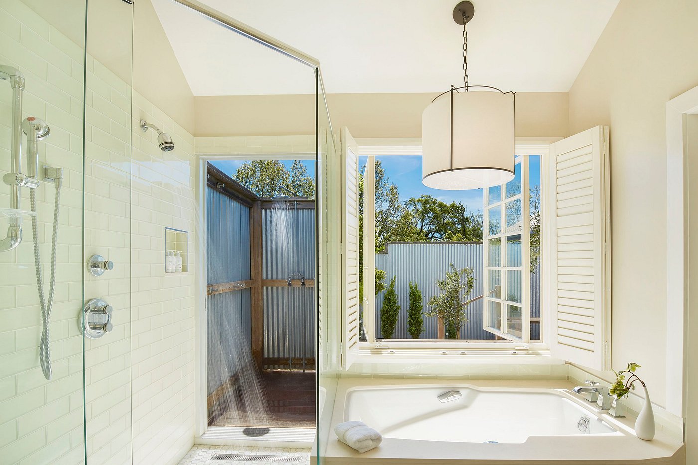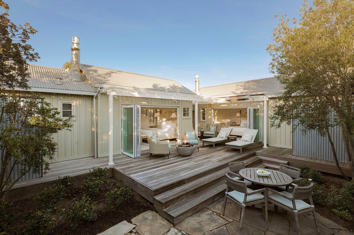 With 101 private cottages, suites, and homes, this modern countryside resort blends farmstead simplicity with California luxury—crisp linens, open fireplaces, and outdoor showers under the stars.