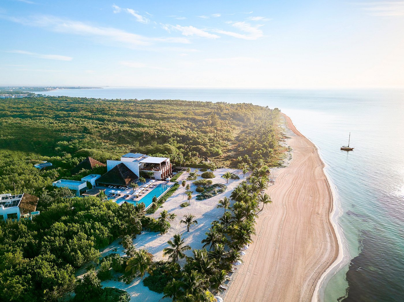 Bare feet in cool sand, then a float where the sea is still and translucent. Breakfast on your terrace arrives with papaya and mango, warm conchas, and strong espresso; the only sound is surf and a rustle of fronds.