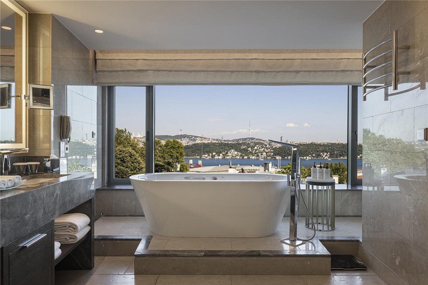 From high floors, the Bosphorus unfurls in shifting shades of blue, while leafy neighborhood streets create a sense of residential serenity just beyond the hotel doors.