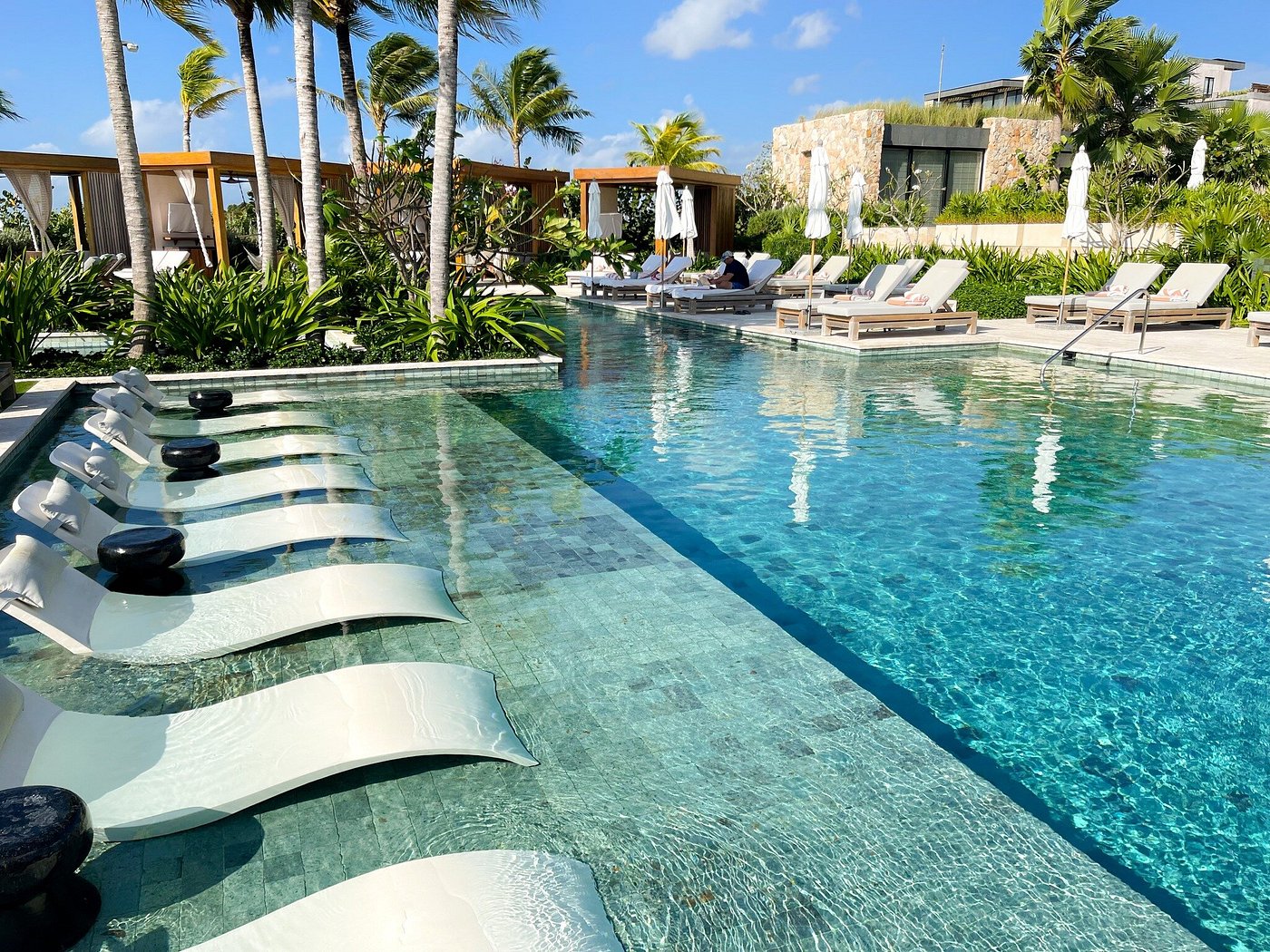 It’s Riviera Maya distilled: salt on your lips, copal on the breeze, and water everywhere—pools, cenotes, and the warm, pale-blue sea.