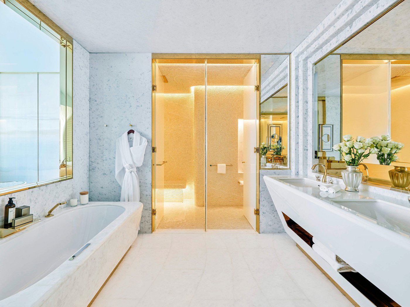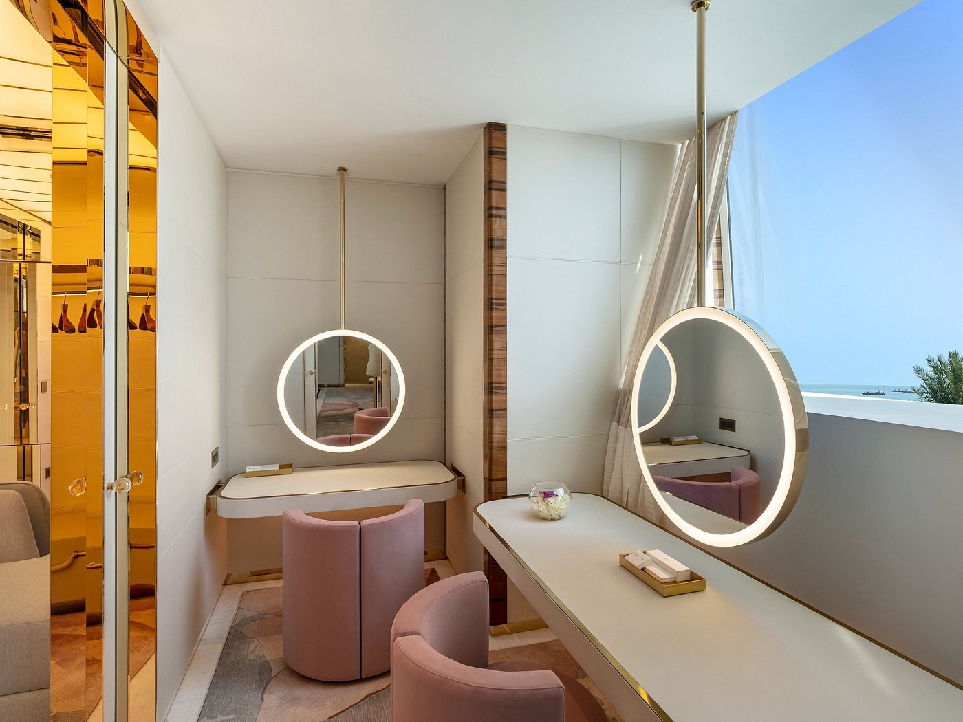 Style: Opulent and hotel—golden modernity infused with Arabian soul.