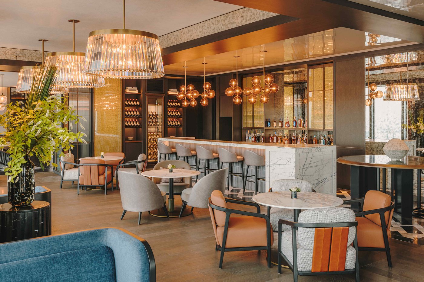 As daylight fades, the city’s geometry sharpens. Dinner feels refined and calm, framed by height and distance rather than proximity to the street.