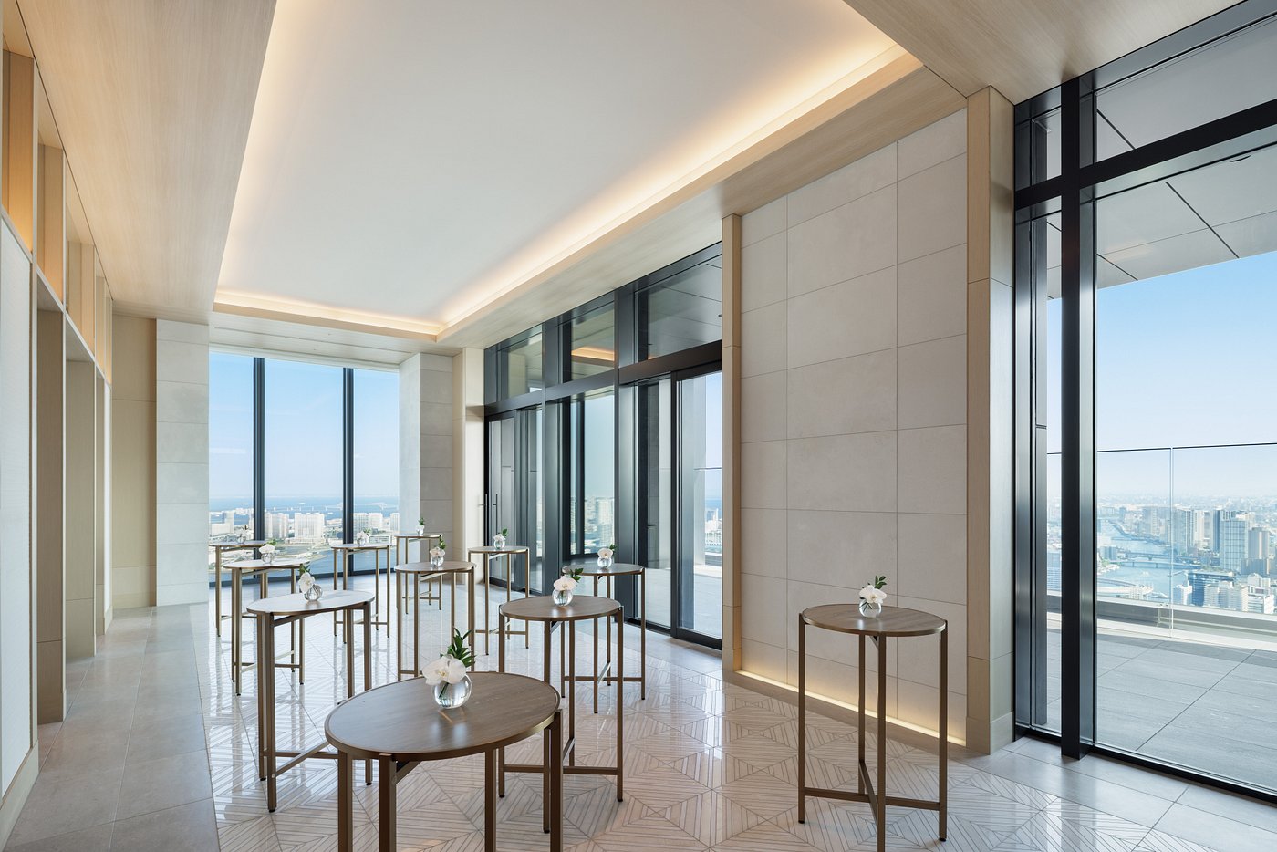 The atmosphere is elegant and measured, where tradition meets Tokyo’s modern vertical rhythm.
