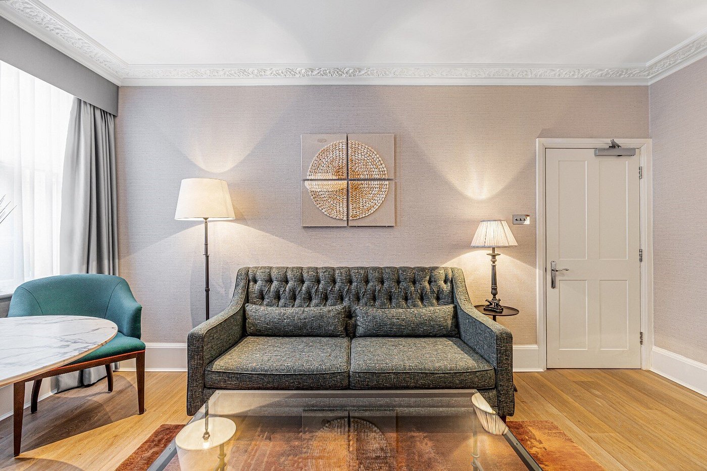 With 120 rooms, suites, and apartments, the hotel preserves its Georgian character—decorative cornices, heritage colors, framed art—while offering contemporary comfort in the heart of London’s most prestigious postcode.