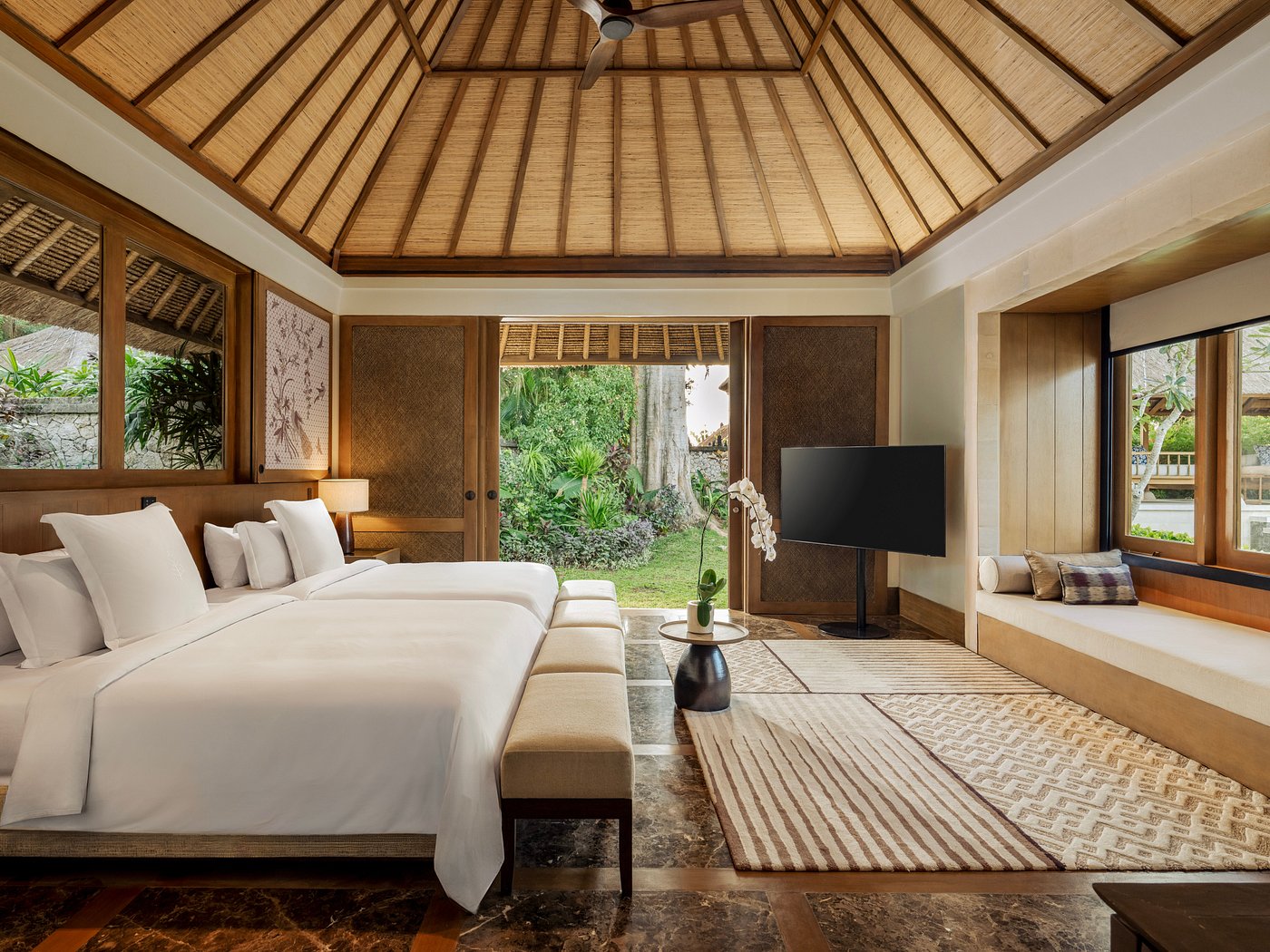 With 147 private villas, each with its own pool, the resort balances scale with intimacy, blending stone pathways, gardens, and open pavilions into the hillside.