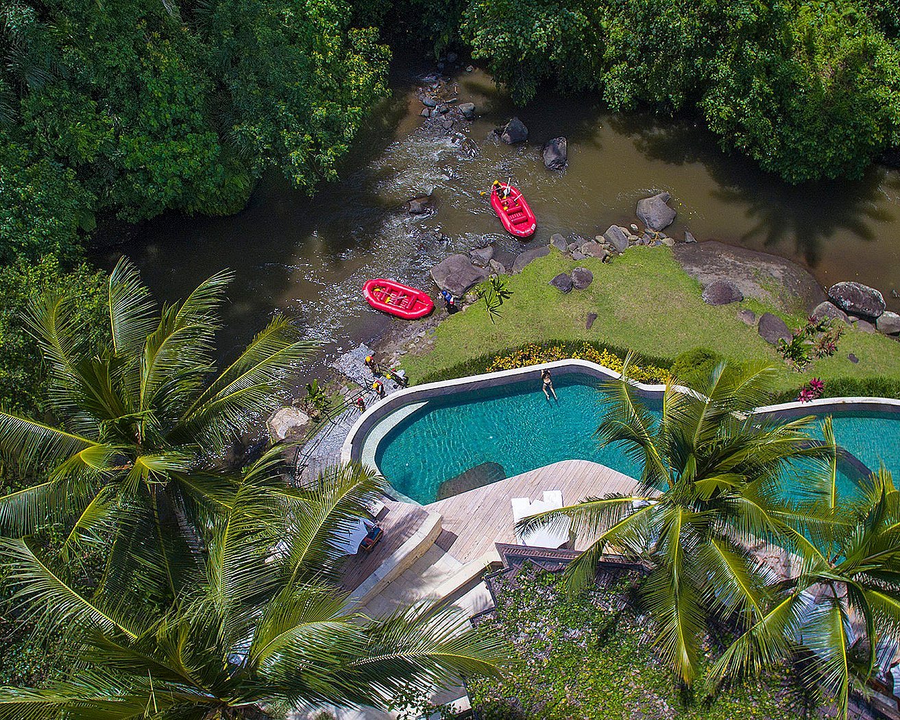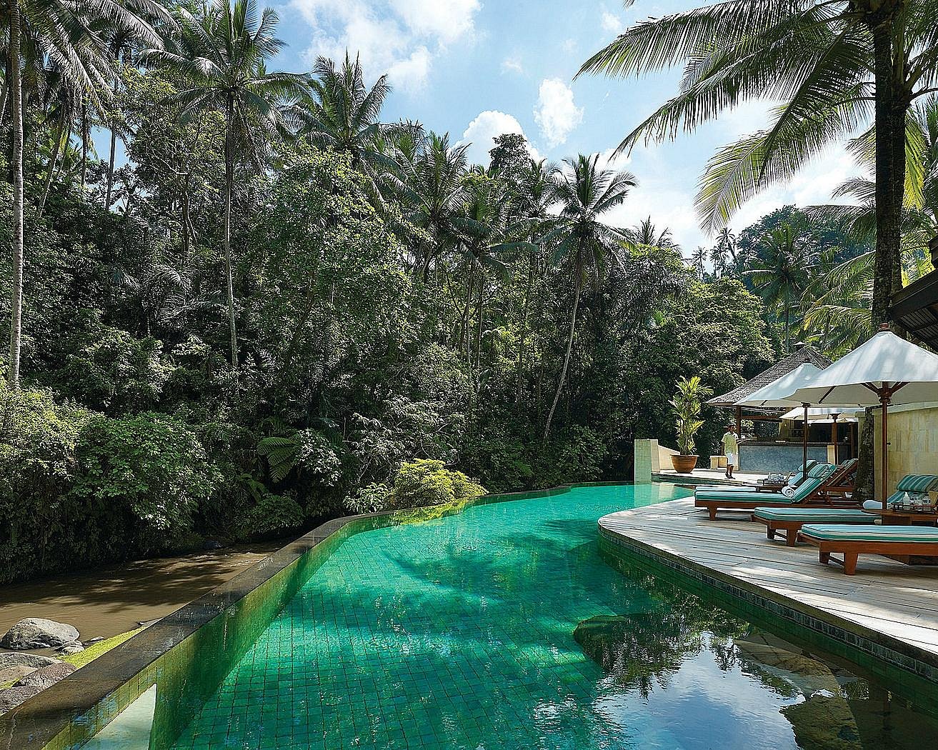 Hidden deep within the folds of jungle near Ubud, Four Seasons Resort Bali at Sayan reveals itself gradually, reached by a dramatic bridge suspended over the Ayung River.