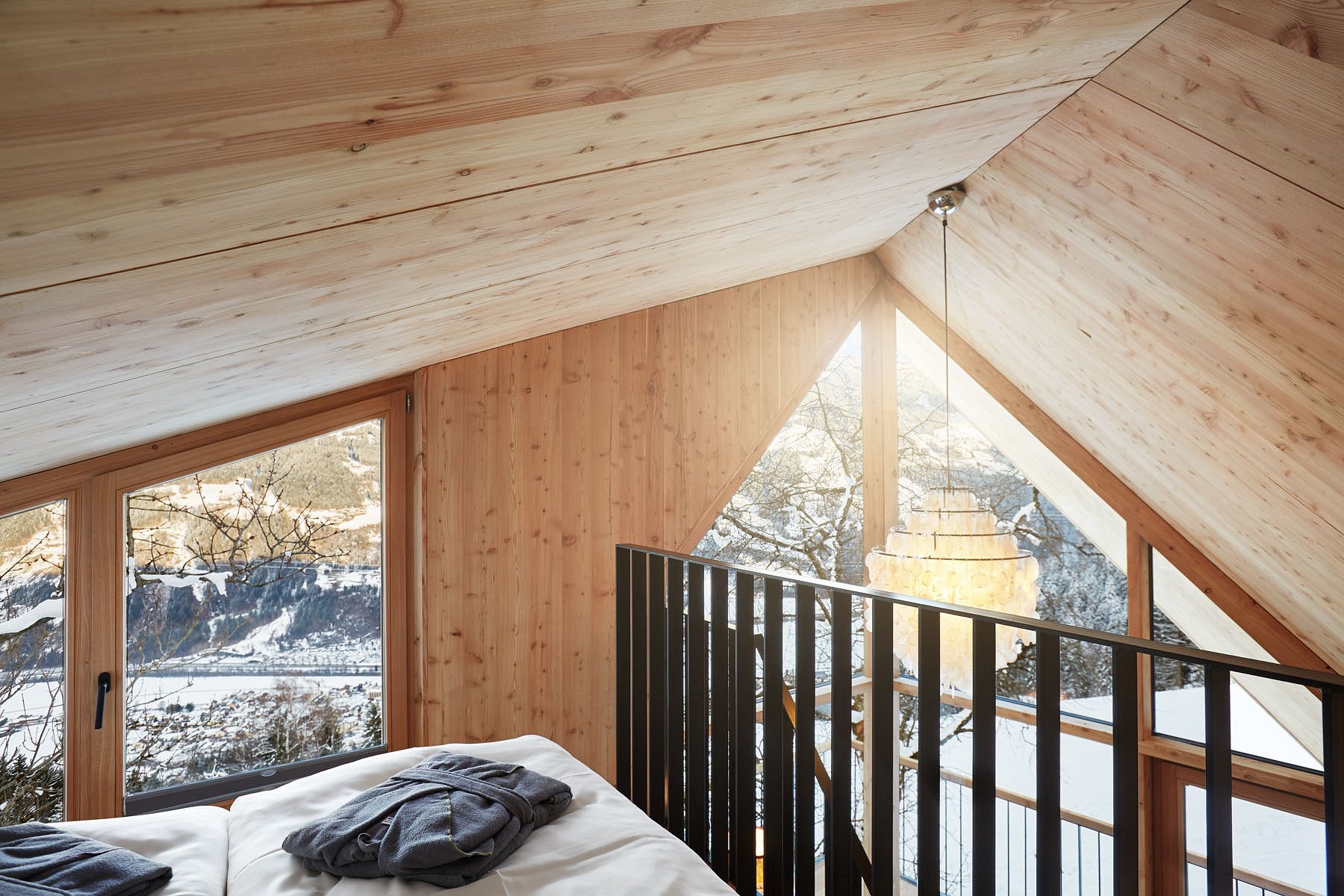 Ski or hike across the Zillertal slopes, or stay in and soak in the outdoor hot tub as clouds move slowly over the mountains. Inside, the fireplace crackles softly and wooden interiors glow with warmth.