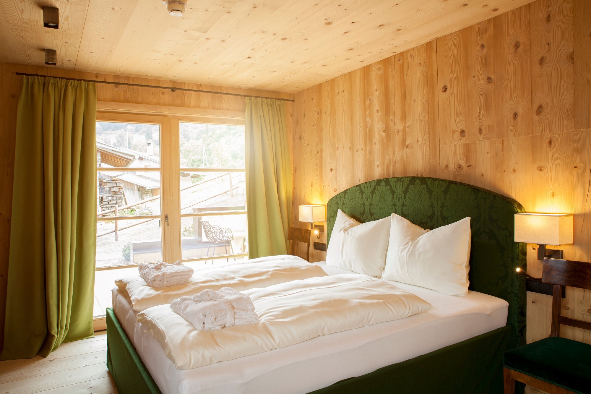With only 7 boutique lodge-style chalets, this rustic retreat feels private, soulful, and wonderfully connected to nature—wood-burning fireplaces, natural materials, outdoor hot tubs, and balconies that open onto vast Tyrolean landscapes.