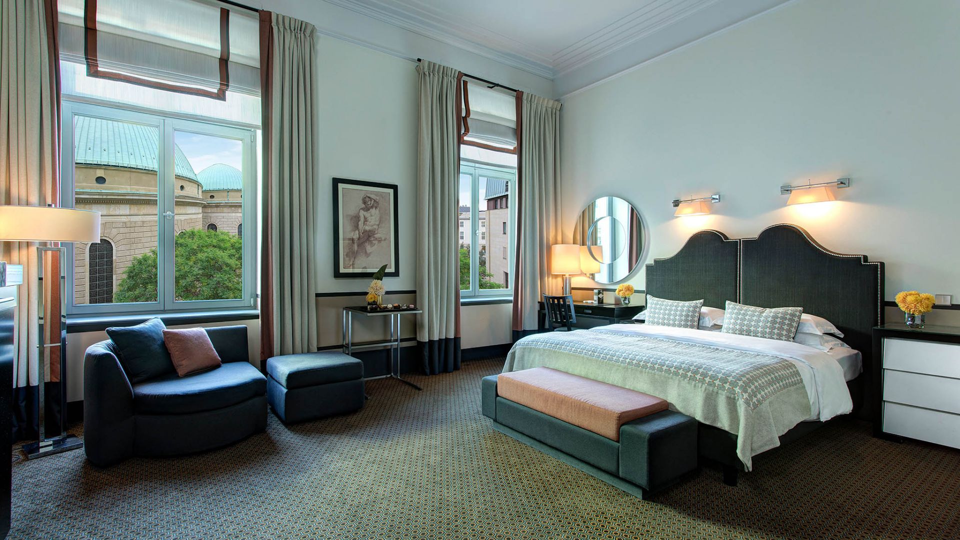Style: Opulent and historical—Prussian neoclassicism softened with modern calm.