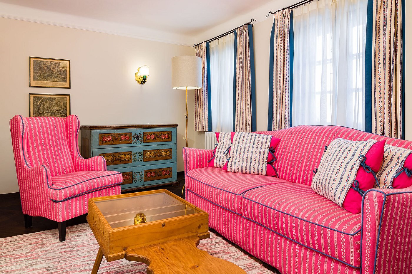 With 70 rooms and suites, it feels like a living museum of Austrian craftsmanship — hand-painted furniture, traditional fabrics, wrought-iron accents, and warm Salzburg charm at every turn.