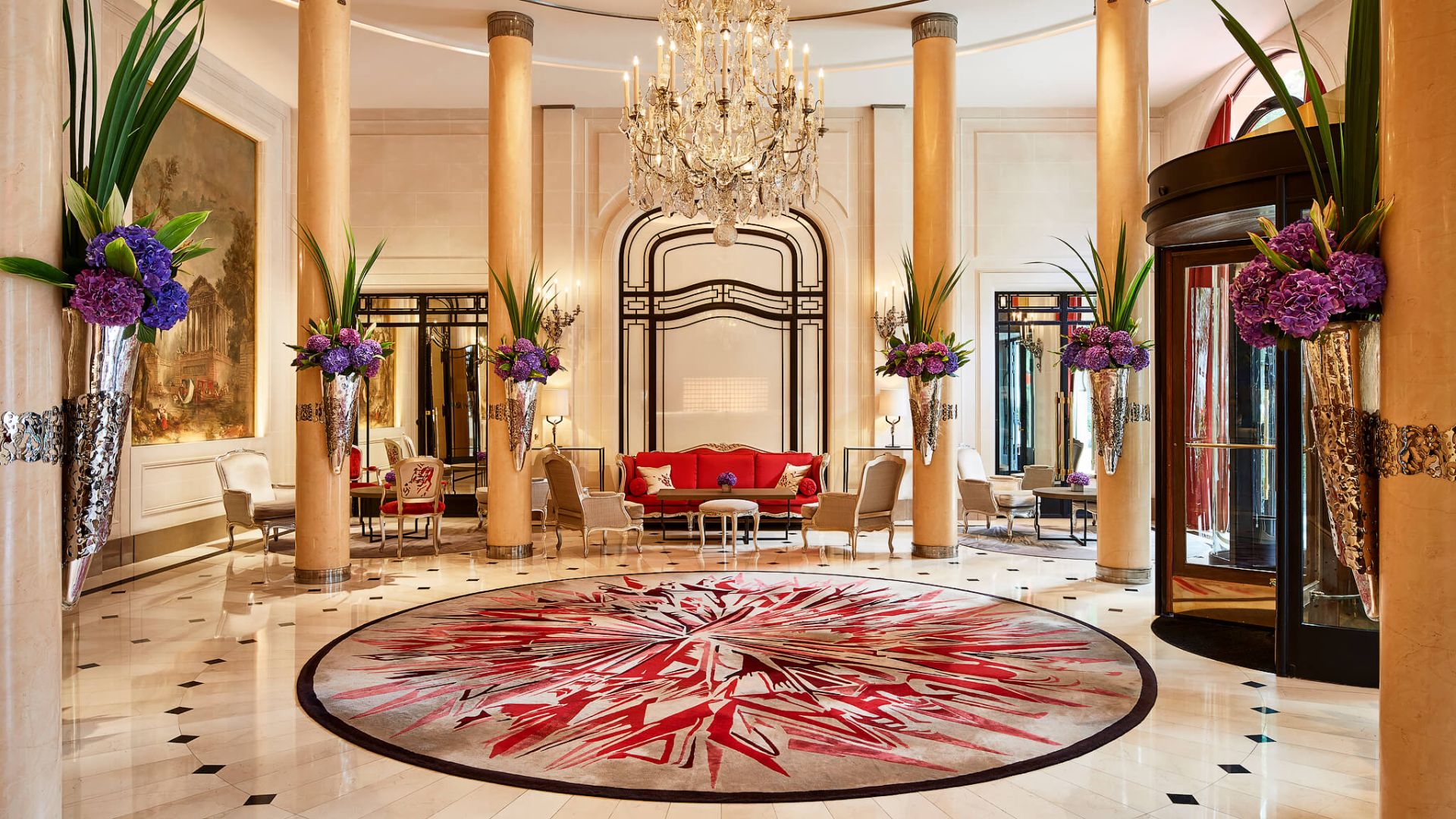 With 208 rooms and suites, this classic-meets-modern palace is where fashion, art, and romance converge—crystal chandeliers above crimson canopies, Dior-gray silk walls, and window boxes blooming in signature red.