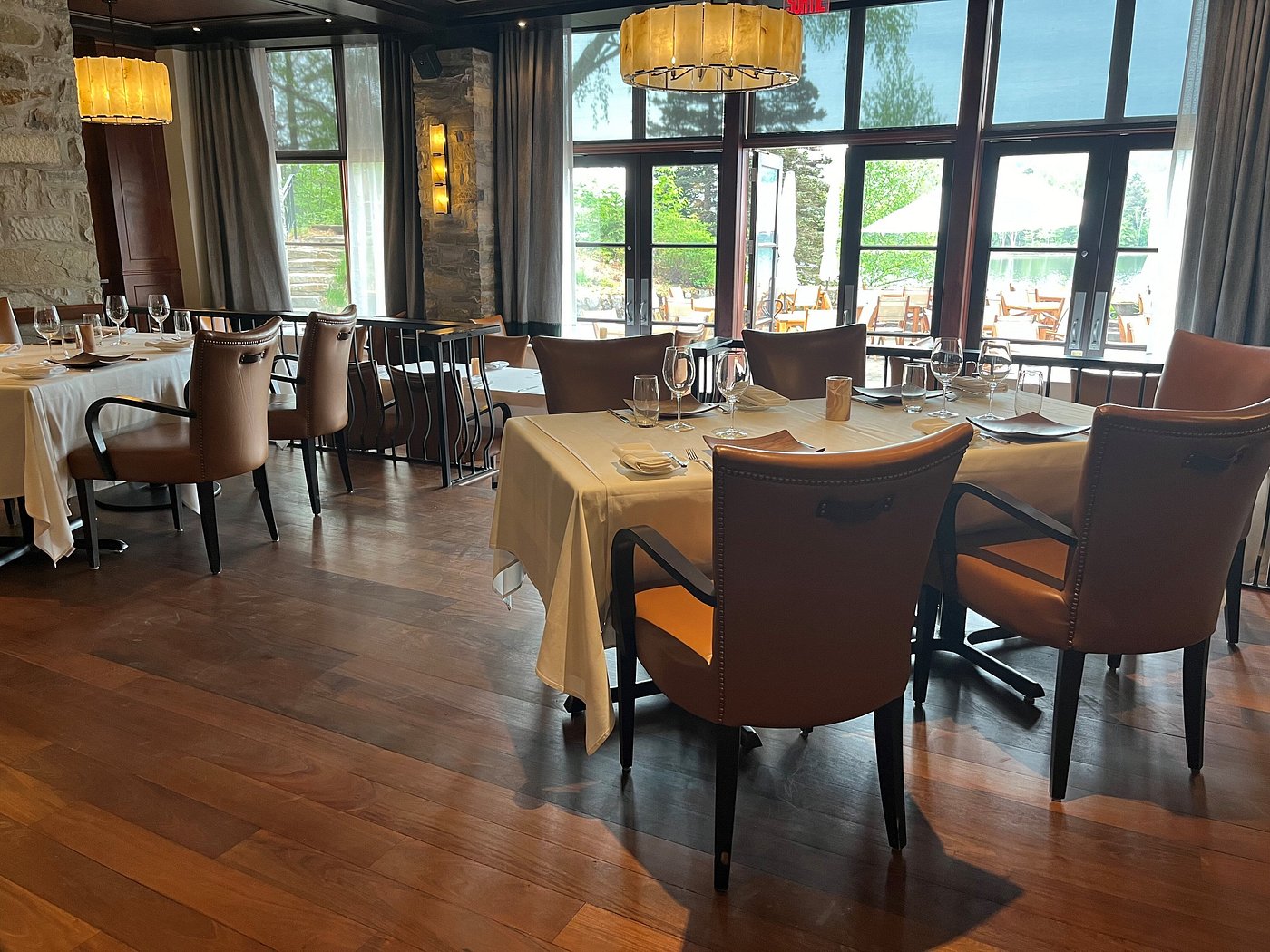 As daylight fades, the lake deepens in color and the resort turns inward. Dinner feels intentional and unhurried, shaped by the awareness that the landscape is doing most of the talking.