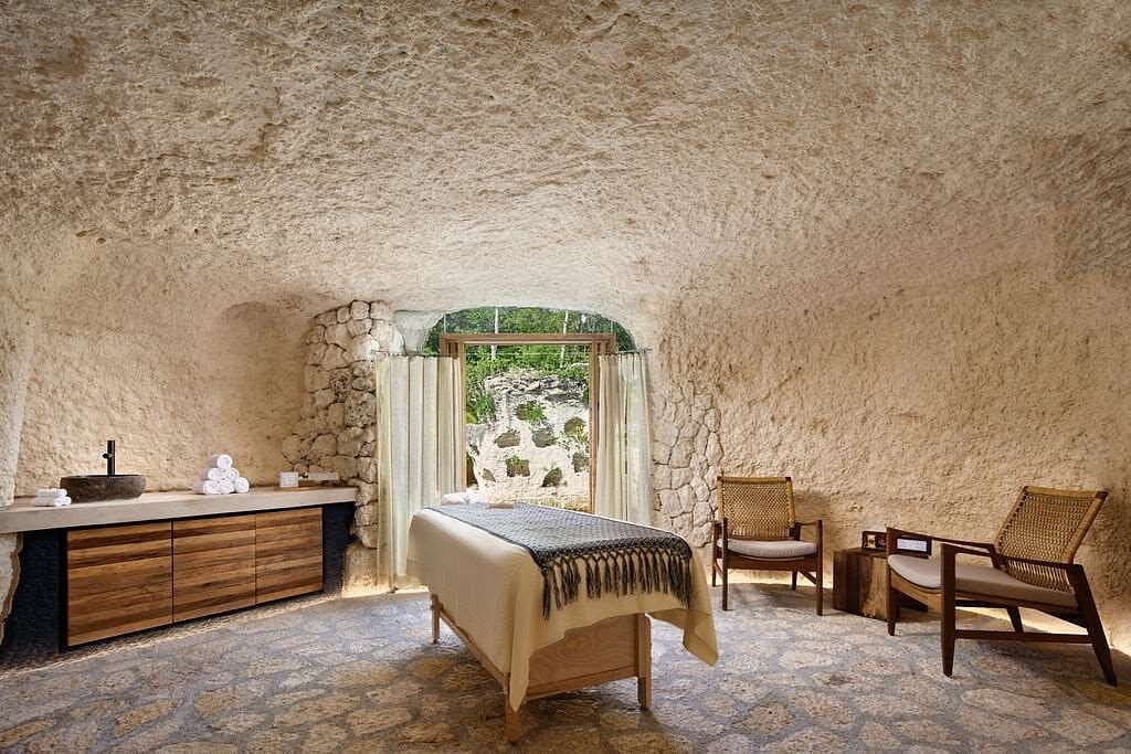 Sunset paints the limestone walls gold. Enjoy a mezcal tasting before dinner at one of the hotel’s acclaimed restaurants. A dance performance illuminates the night, followed by a midnight swim beneath lanterns.