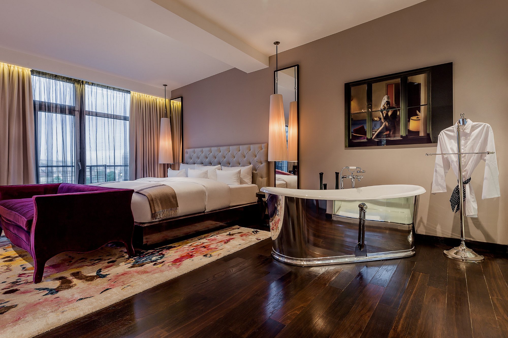 Rooms: 141 rooms and suites, designed with rich textures, dramatic lighting, and modern Art Deco influences.