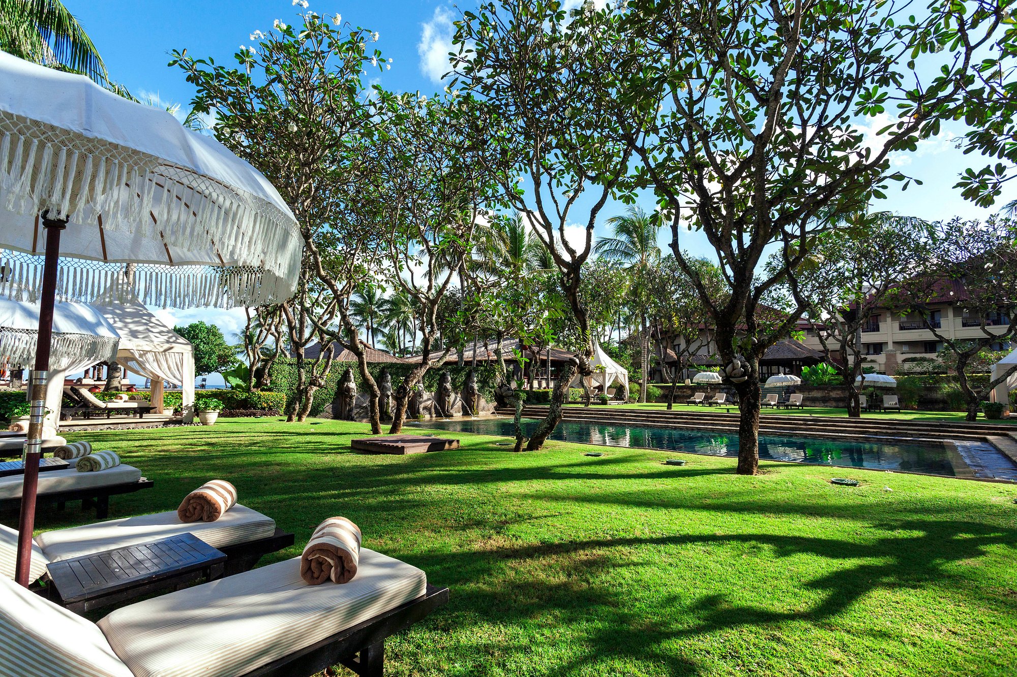 The day stretches comfortably. Time drifts between the beach, shaded loungers, and long walks through the gardens, with space always available to step away from activity.