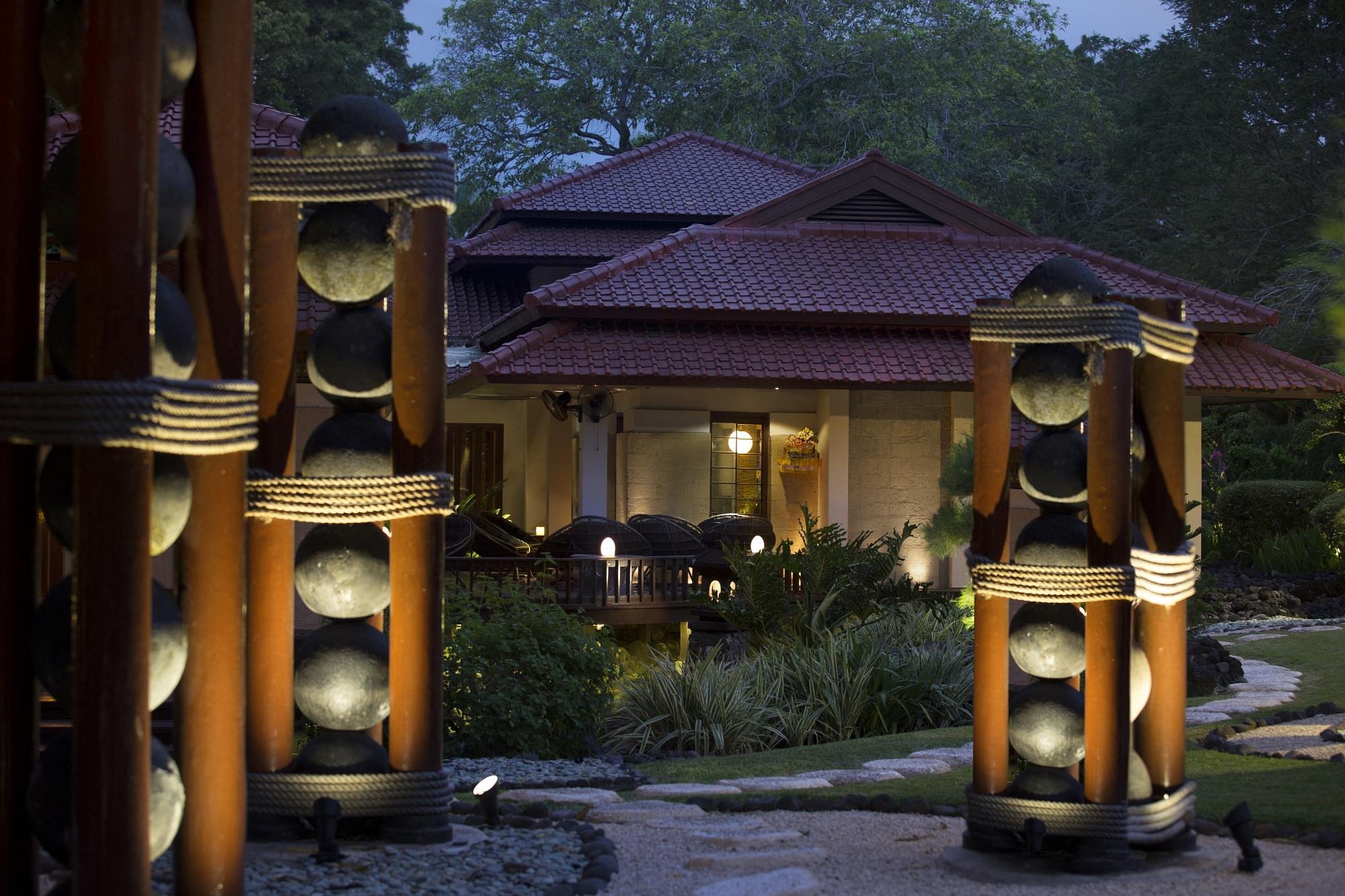 Darkness settles gradually. Waves remain audible but calm, pathways glow faintly, and rooms feel insulated and restful. Sleep arrives easily, guided by familiarity and space.