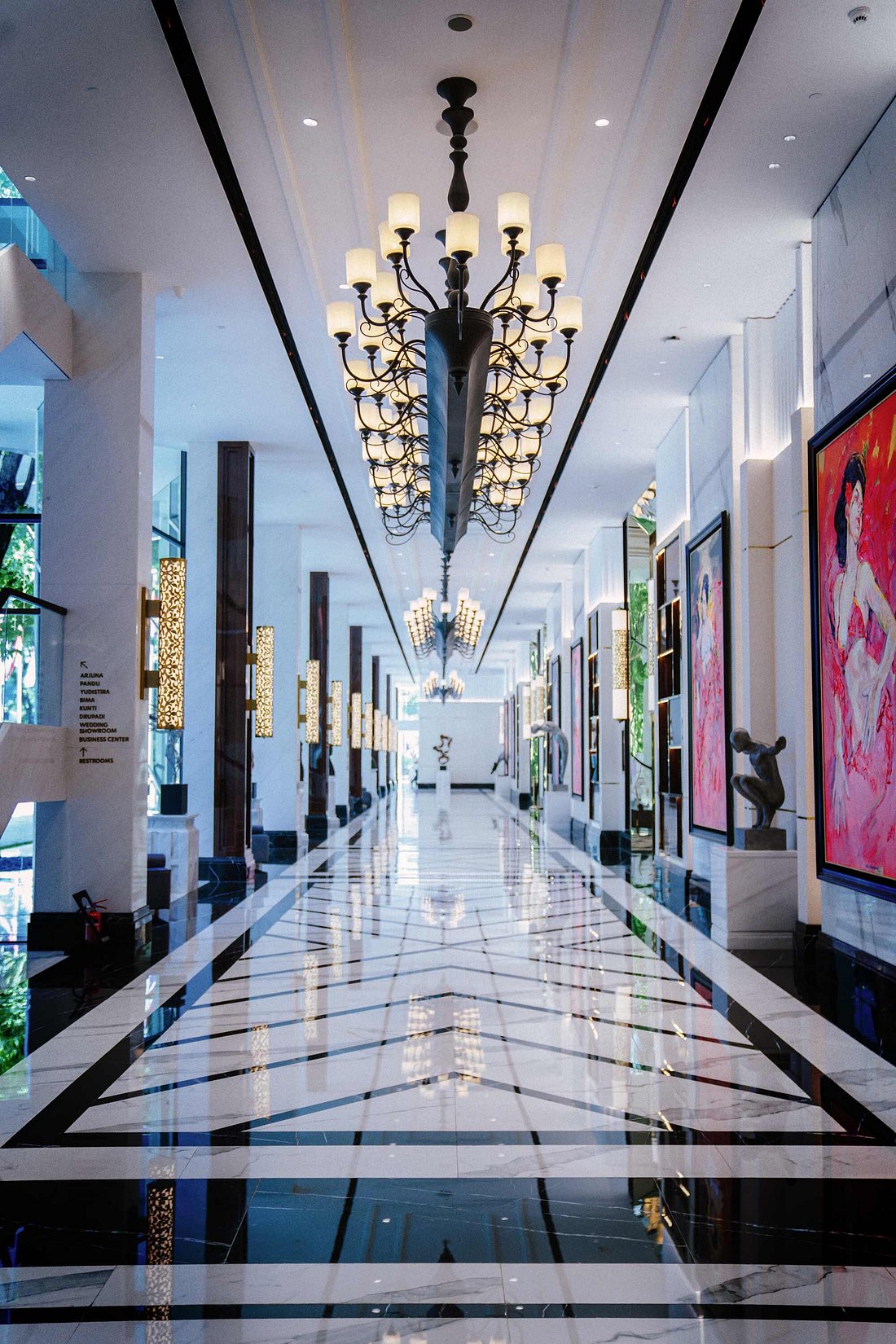 With 425 rooms, suites, and villas, the resort feels open rather than imposing, shaped by palms, water features, and long beachfront paths.