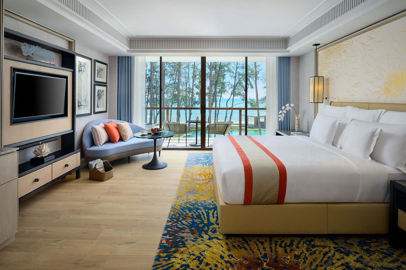 With 221 rooms, suites, and villas, the resort combines grand Thai-inspired architecture, refined contemporary interiors, and a setting shaped by soft sand, clear water, and gentle sea breezes.