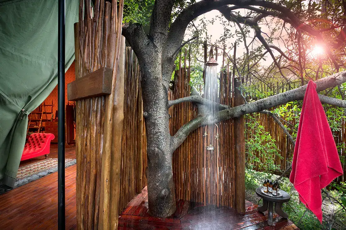 🛏️ Rooms: 9 luxury safari tents + 1 two-bedroom villa, all with plunge pools & outdoor showers