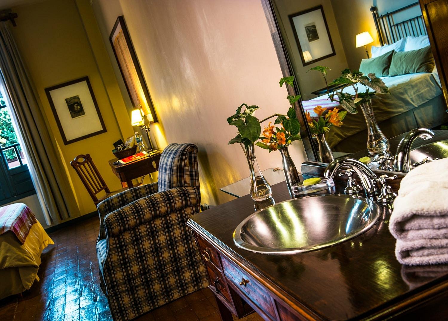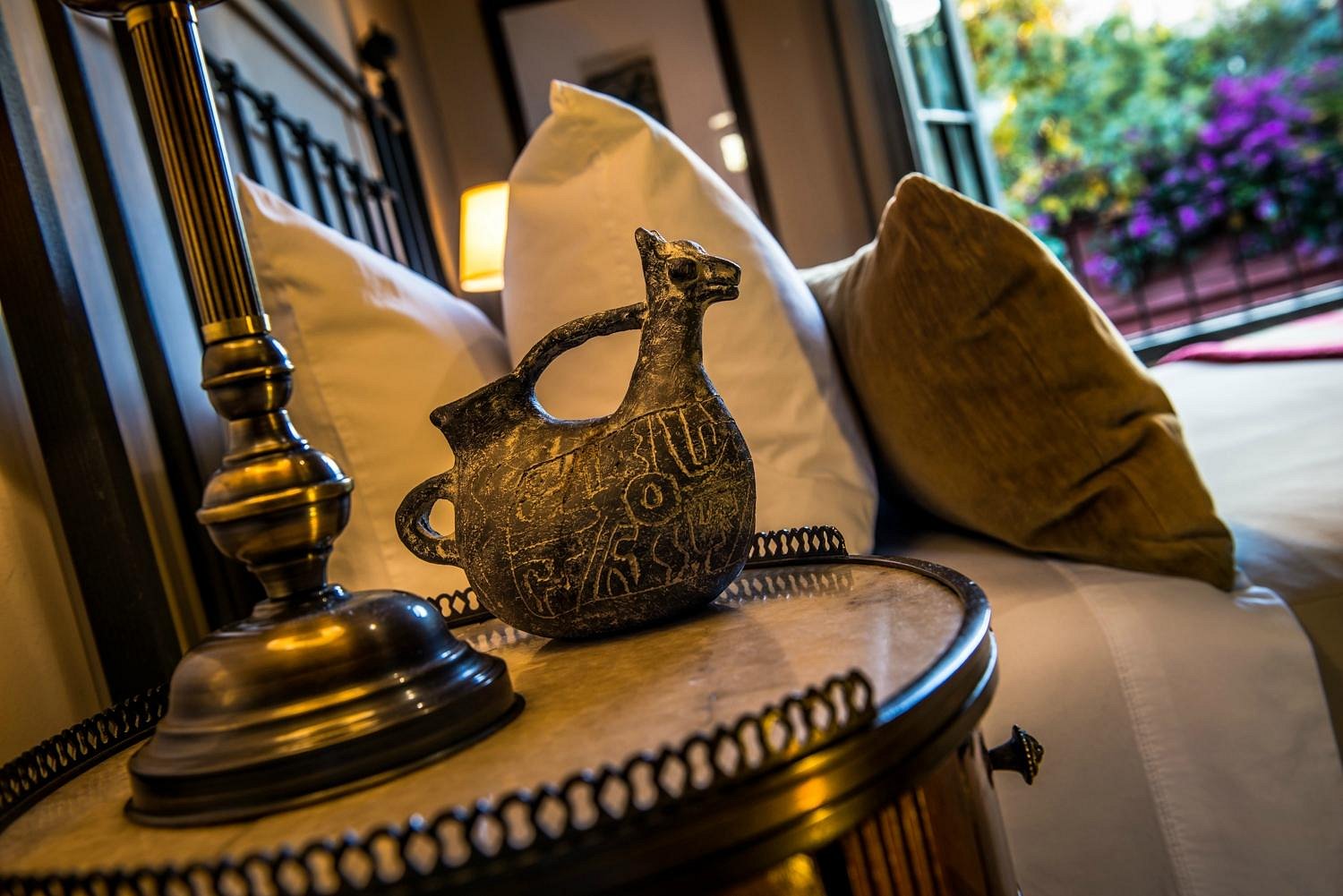 Your room feels warm and personal, with soft lighting and handcrafted details. The gardens outside slip into peaceful stillness.