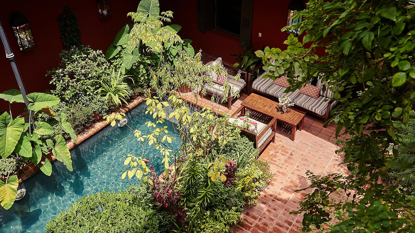 Rooms: 7 boutique rooms with handcrafted details and leafy views.