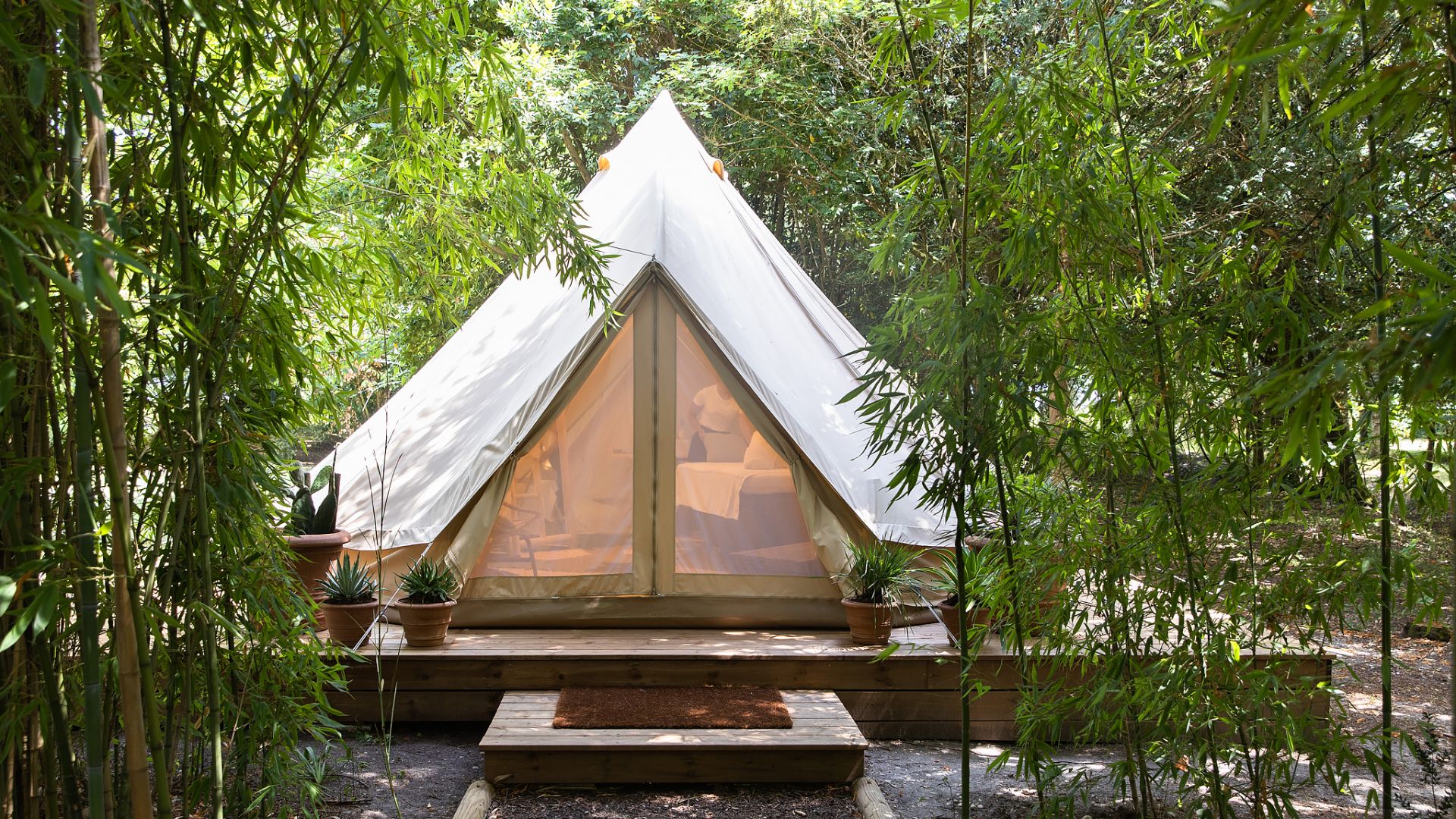 Your suite glows with soft light and rustic elegance—wood beams, linen drapes, and the quiet hum of the countryside under a sky full of stars.
