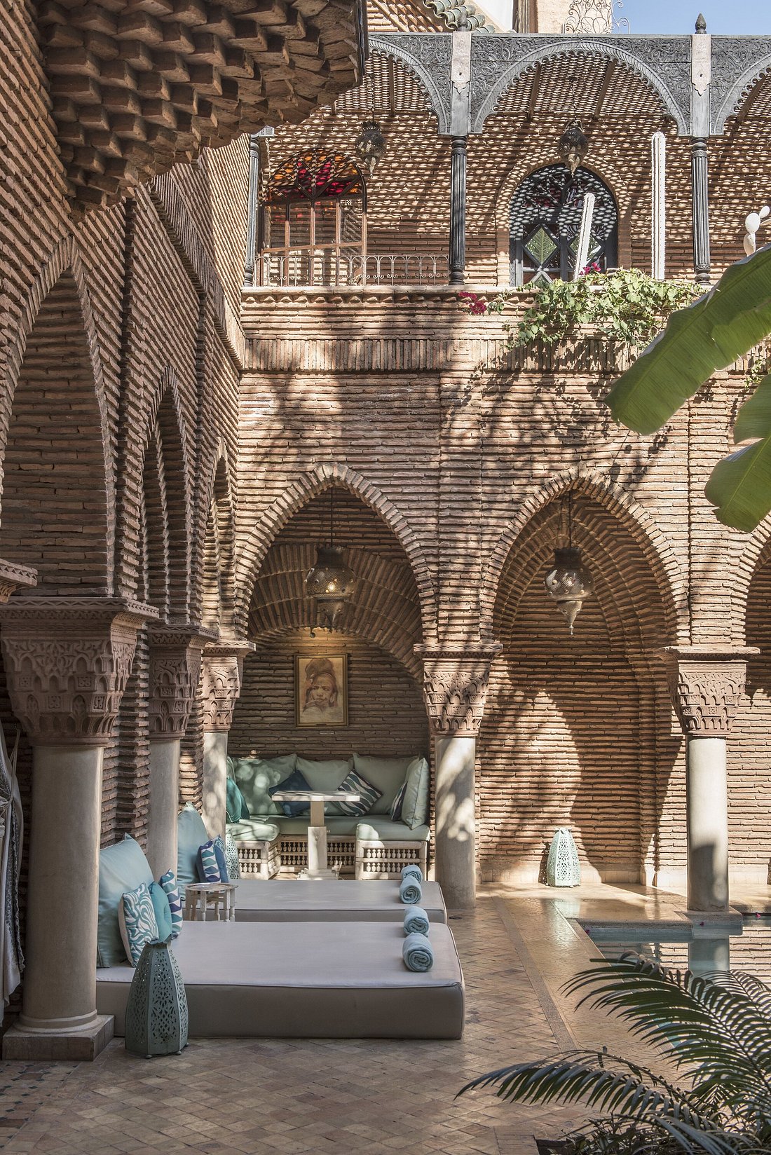 Explore Jemaa el-Fnaa or Bahia Palace, then return for a hammam ritual perfumed with eucalyptus and rose.