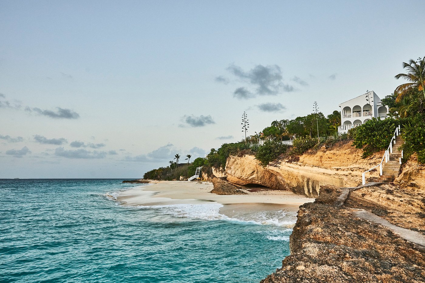 Walk down to Meads Bay as early light shimmers across the water, then enjoy breakfast overlooking the sea—fresh fruit, pastries, and the scent of warm Caribbean air.