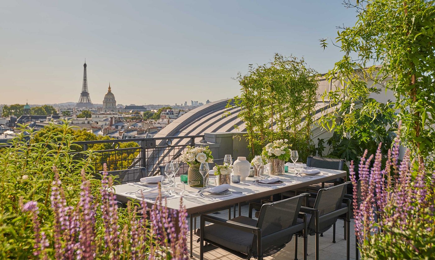 Stroll through Saint-Germain-des-Prés, visit Café de Flore or nearby boutiques, then retreat to the Akasha Spa for a swim or aromatic massage.