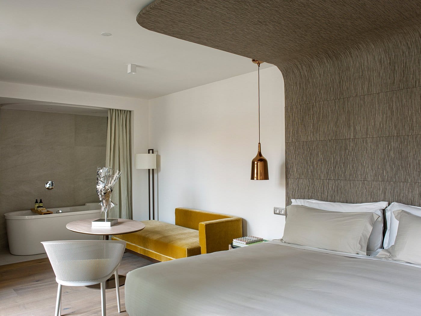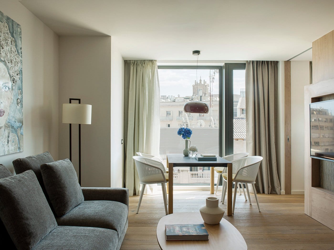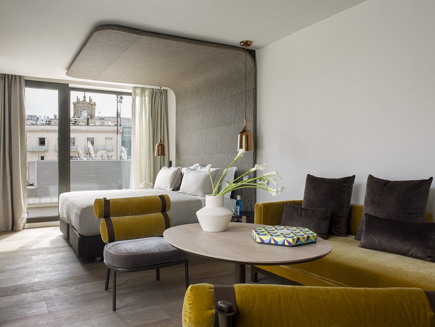 This design-led city hotel offers 164 rooms and suites a block from Passeig de Gràcia, where Gaudí’s facades glow by day and rooftop cocktails glow by night.