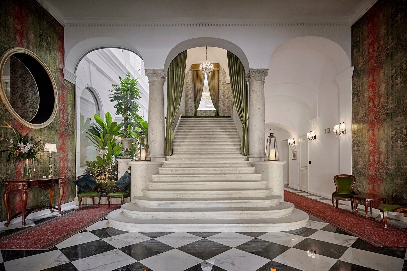 - Architectural Drama: Frescoes, marble columns, and grand staircases reinterpreted with modern flair.