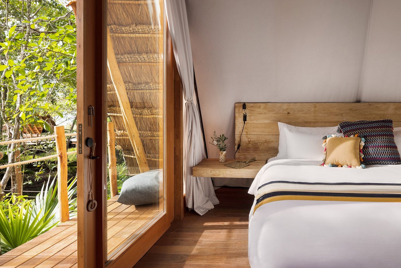 Our Habitas Bacalar is a 34-key boutique hideaway of canvas bungalows and wood-and-palm cabanas set on Mexico’s famed Laguna de los Siete Colores.