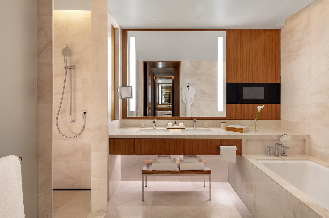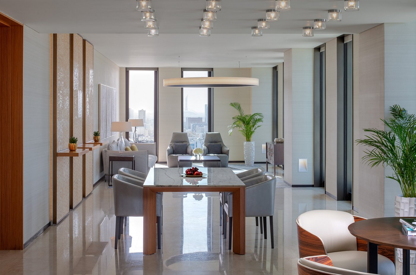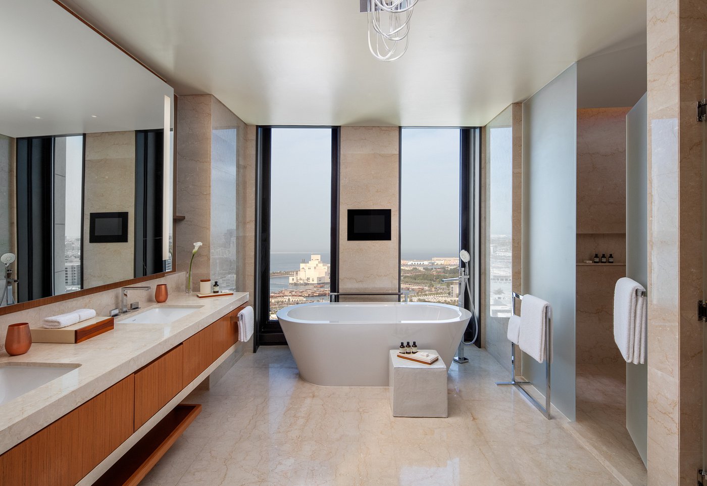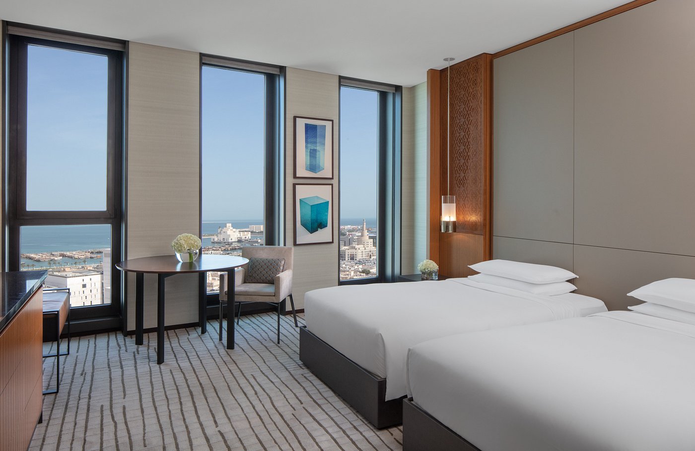 Style: Modern and hotel—contemporary Doha refinement grounded in Qatari design motifs.
