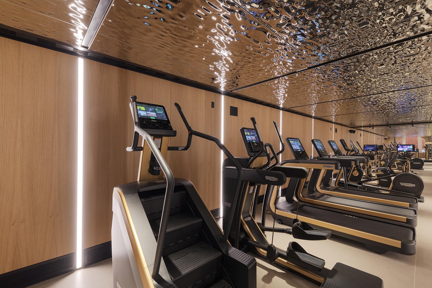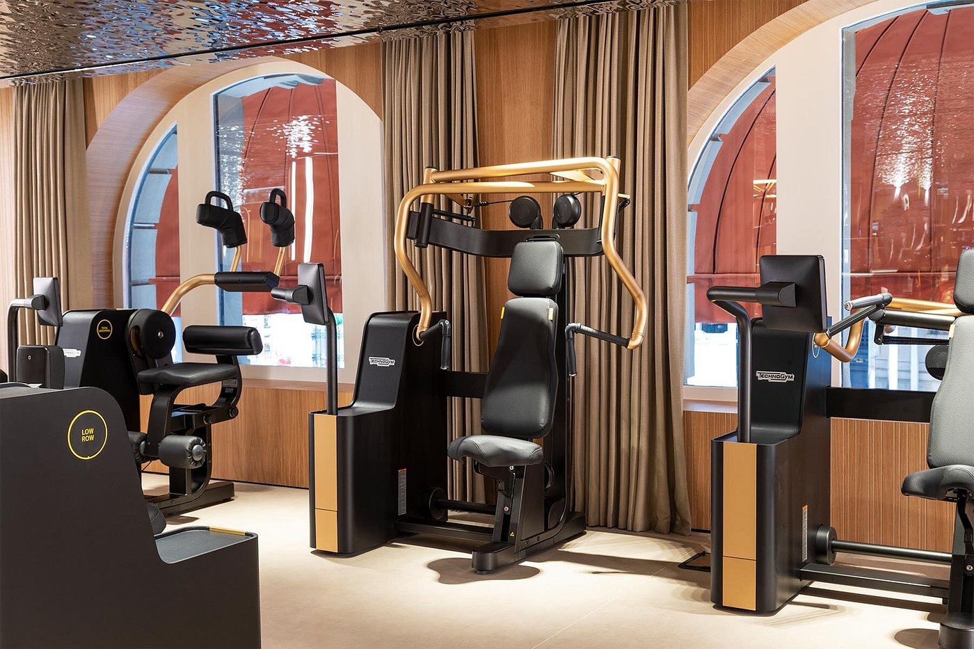 • The gym is compact but equipped for a solid workout.