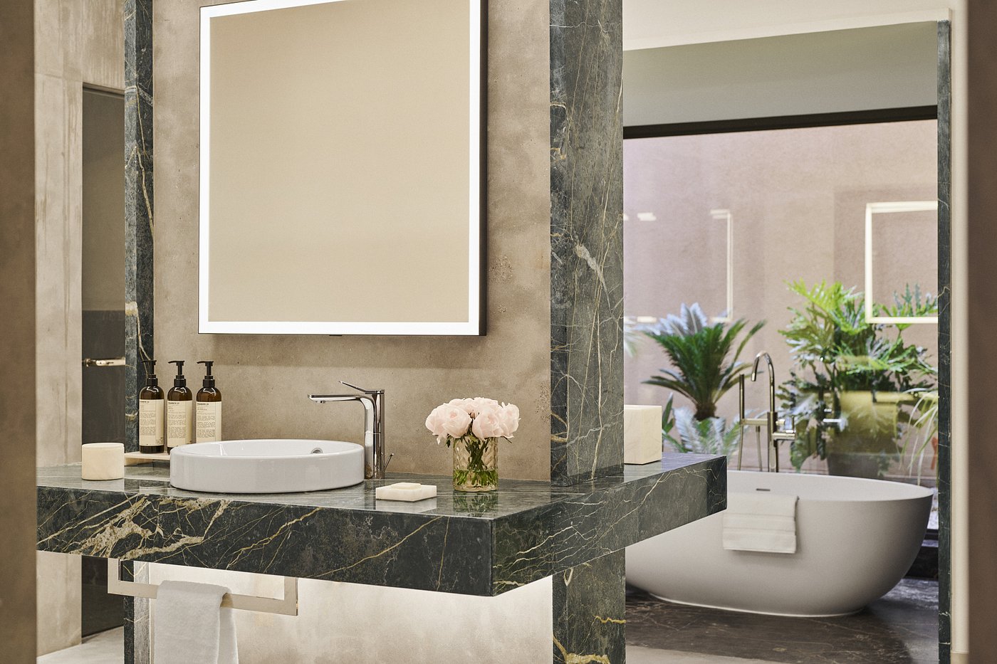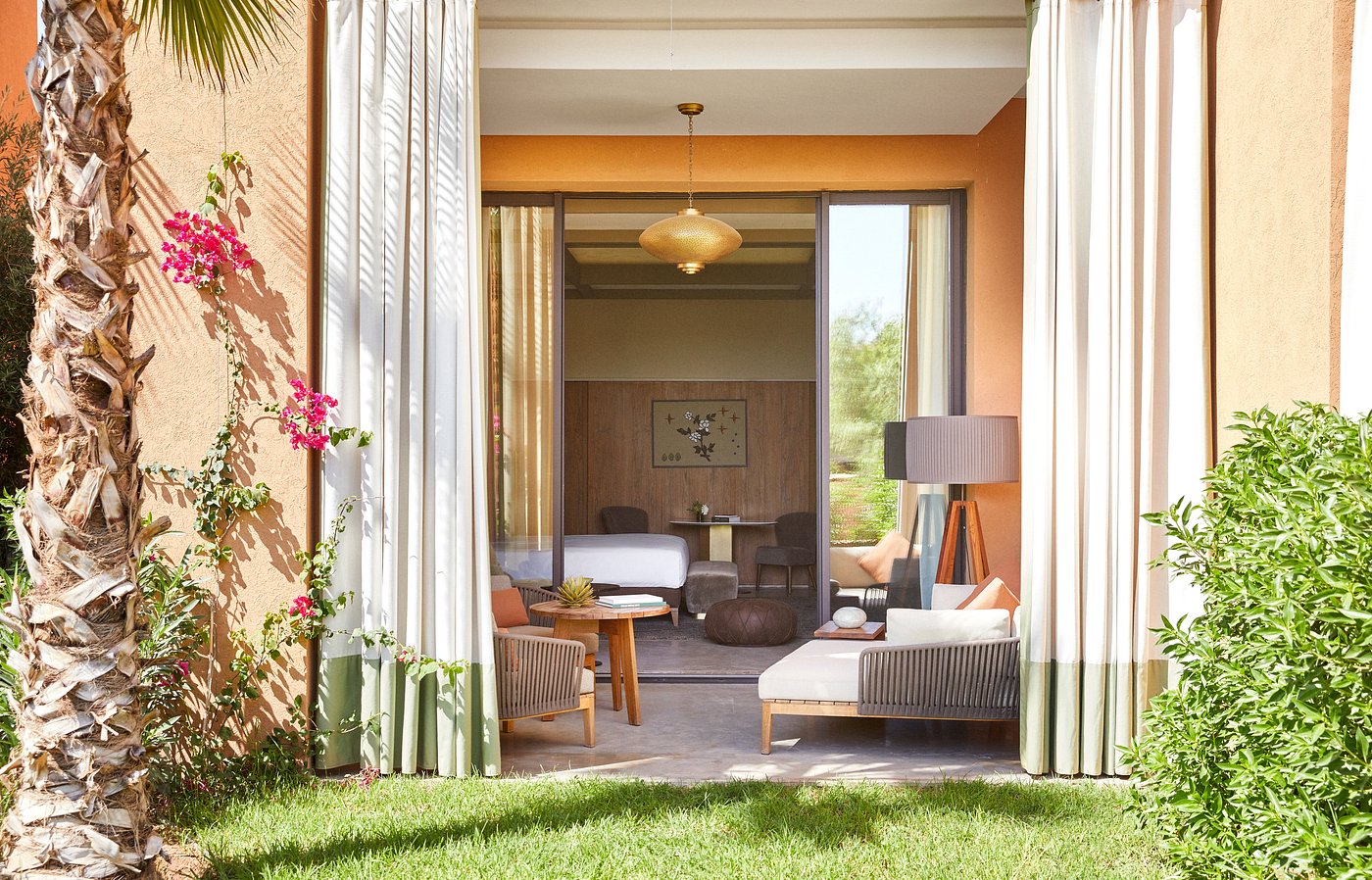 With 130 rooms and suites, this modern palace unfolds across terracotta courtyards, reflecting pools, and olive groves — a serene counterpoint to the city’s vibrant medina.