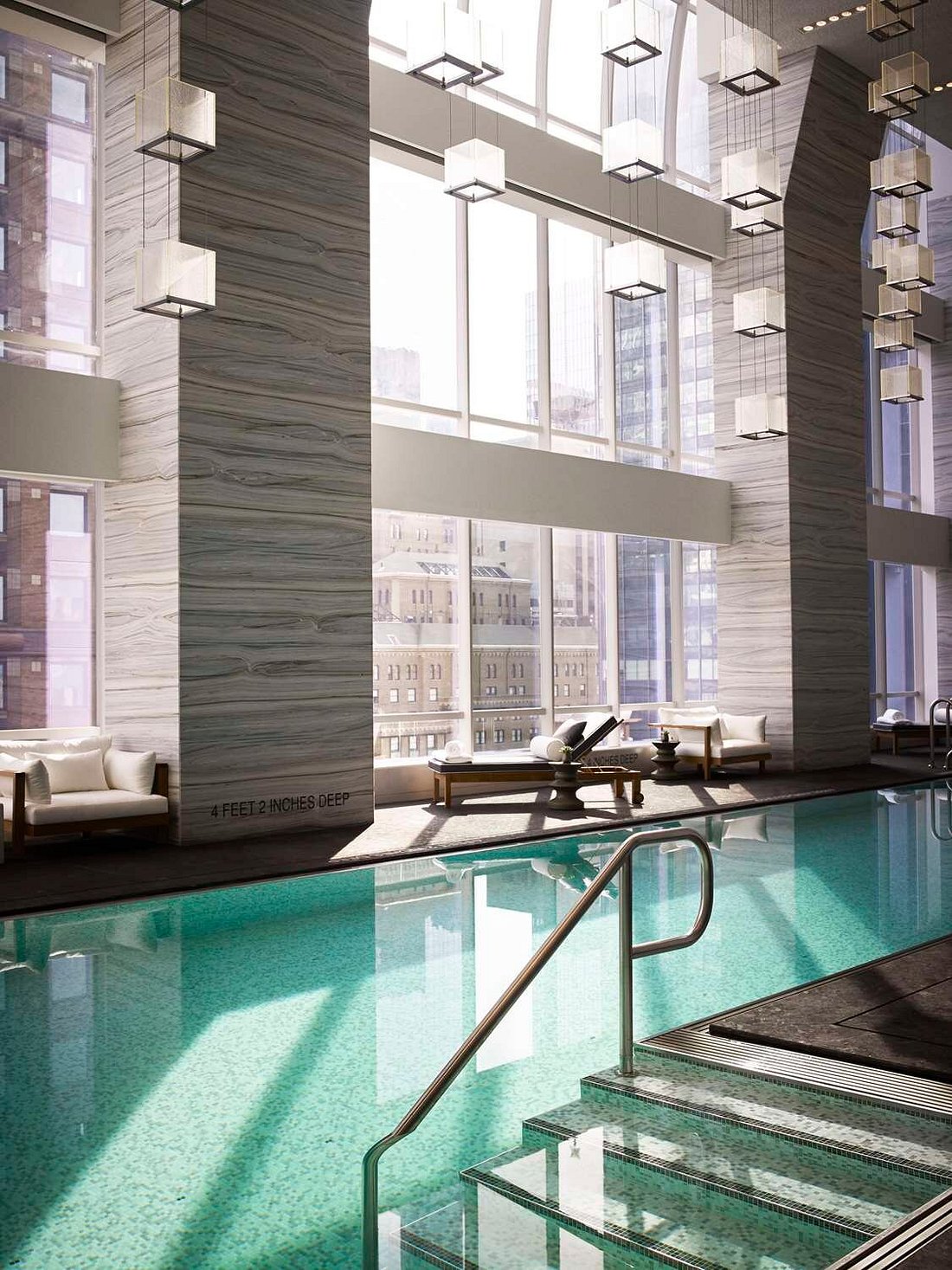 Midday unfolds efficiently. Midtown’s galleries, meetings, and shopping districts sit within easy reach. Back at the hotel, the shift is immediate—noise drops away, replaced by quiet hallways and generous space. The indoor pool offers a pause, light reflecting off water and stone in slow, steady rhythms.